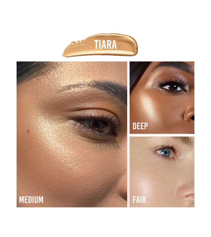 Este iluminador líquido montável fornece um acabamento luminoso lindo e duradouro em todo o rosto.