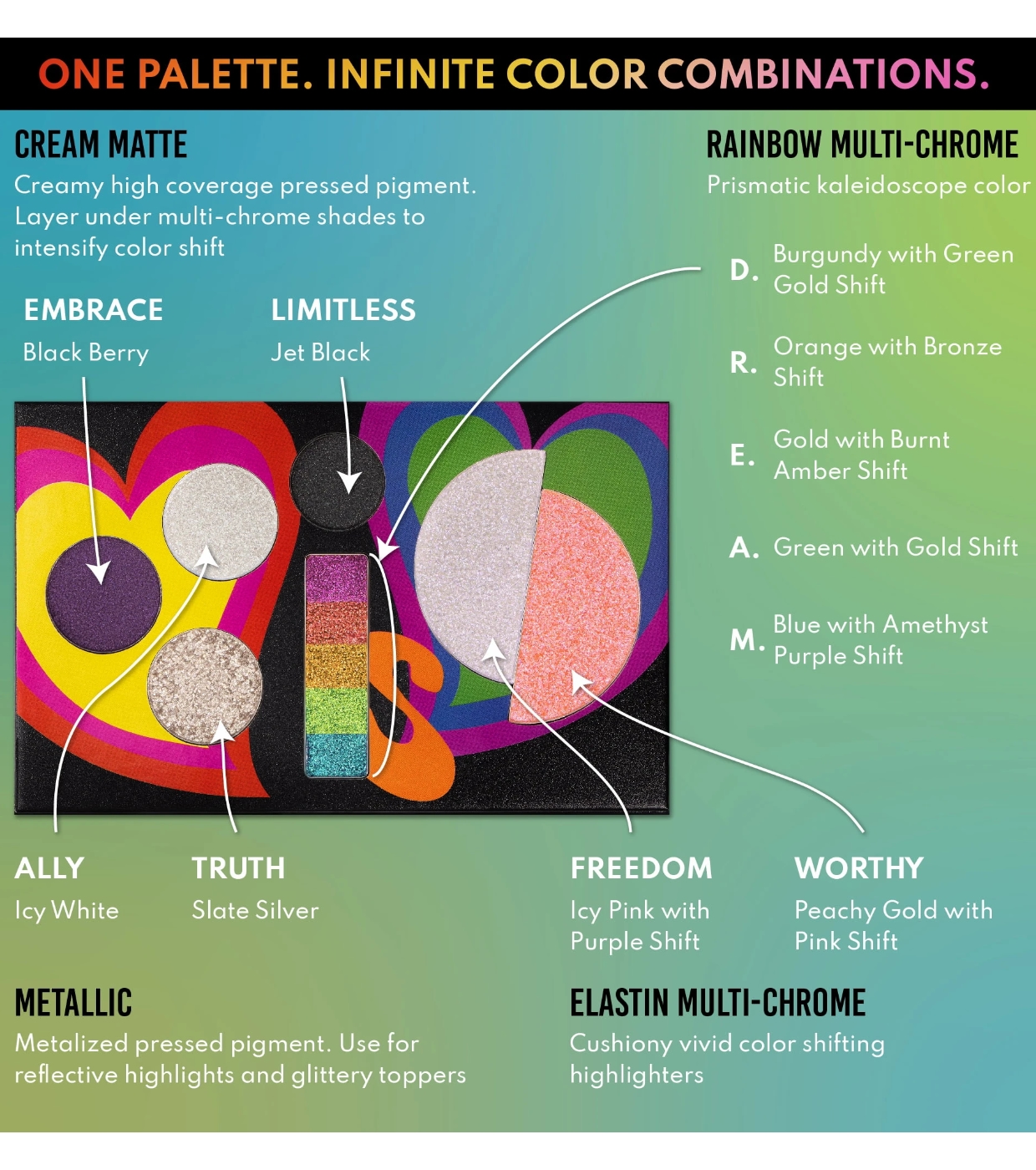 Inspirada na comunidade LGBTQ+, essa paleta é perfeita para quem busca uma maquiagem inclusiva e colorida.