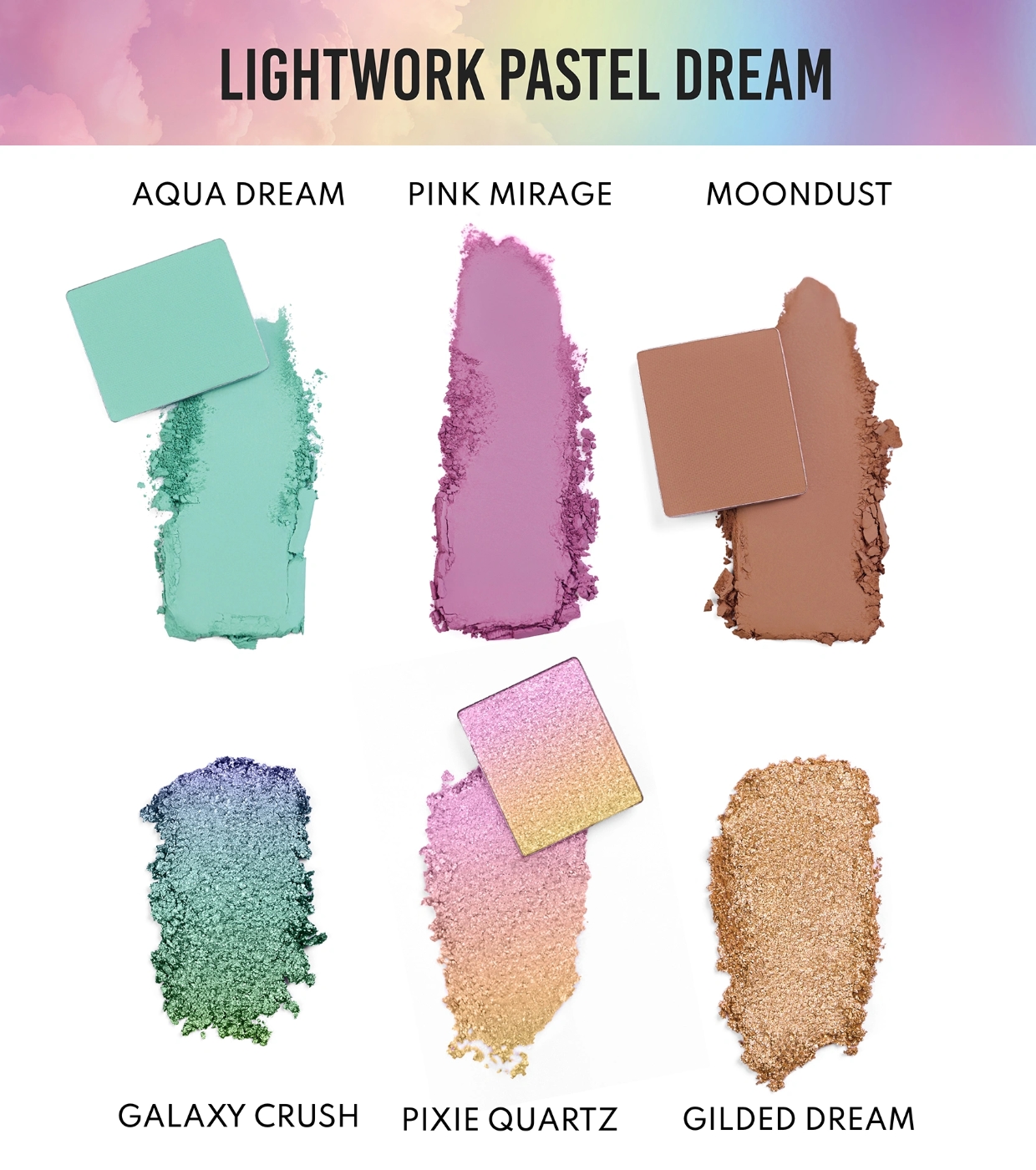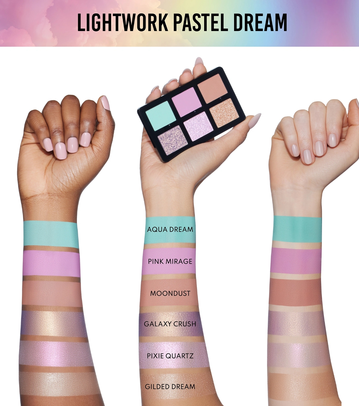 Descubra uma experiência de cores etéreas com a paleta de sombras Pastel Dream de Danessa Myricks , uma mini paleta magnética com 6 tons multicromáticos e suaves, inspirados na luz mágica das nuvens do pôr do sol.