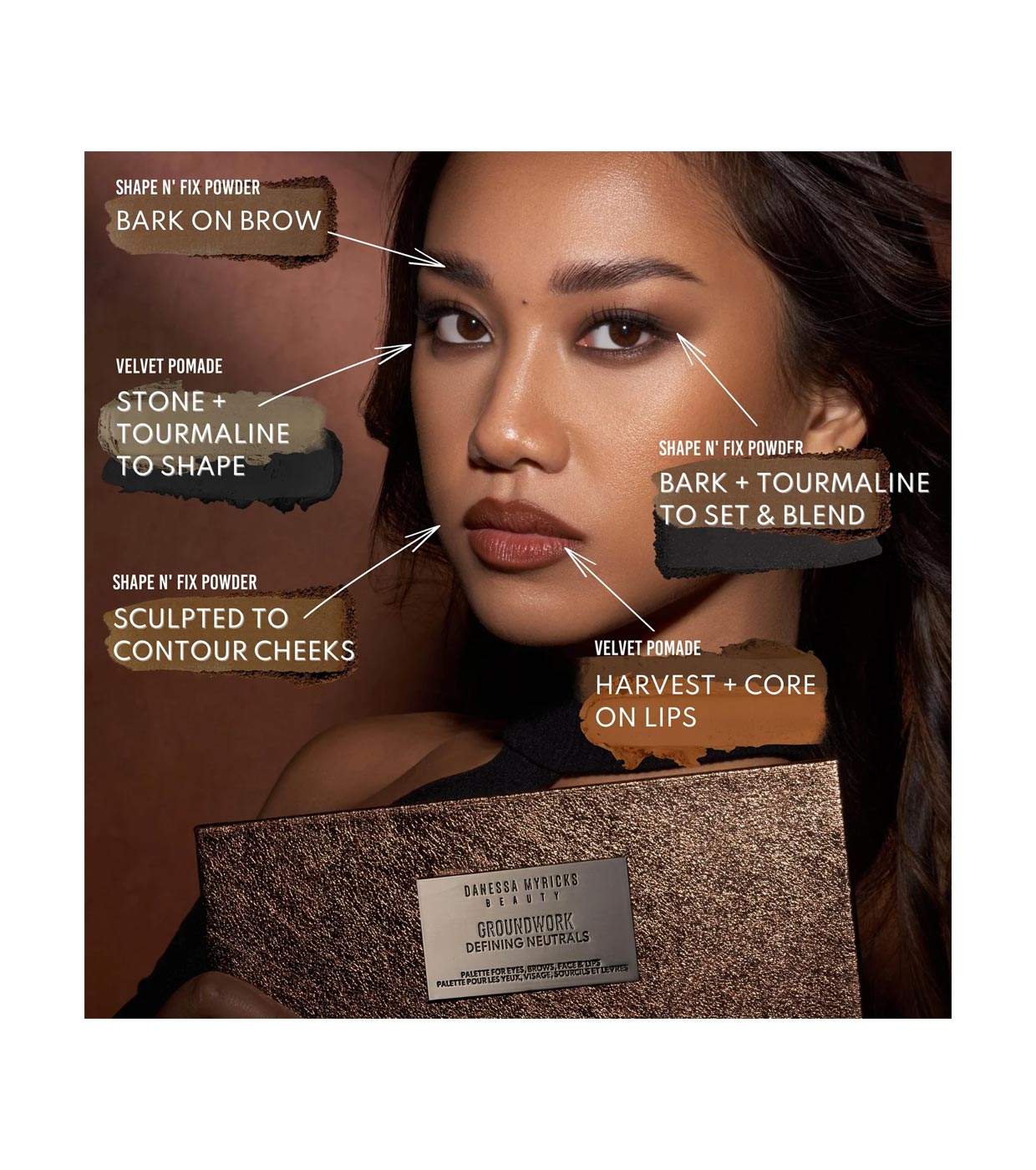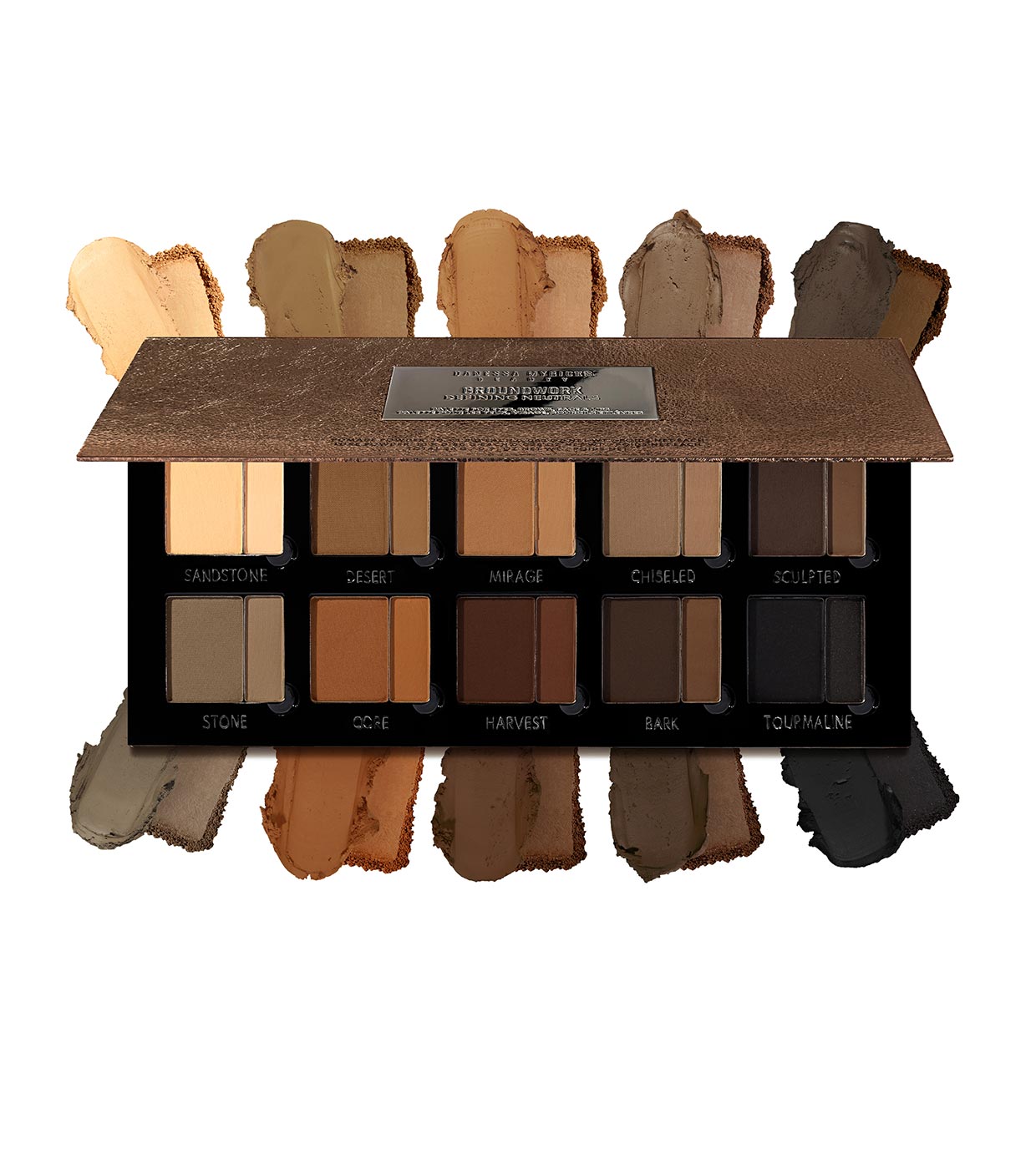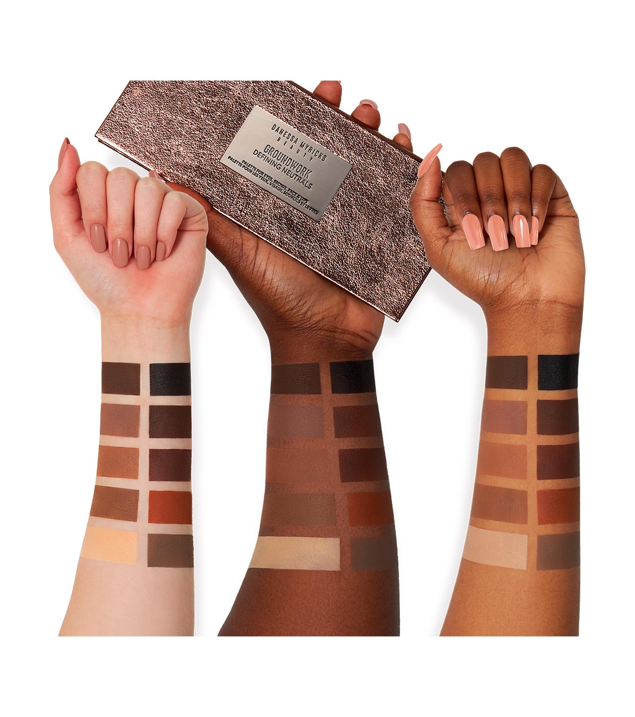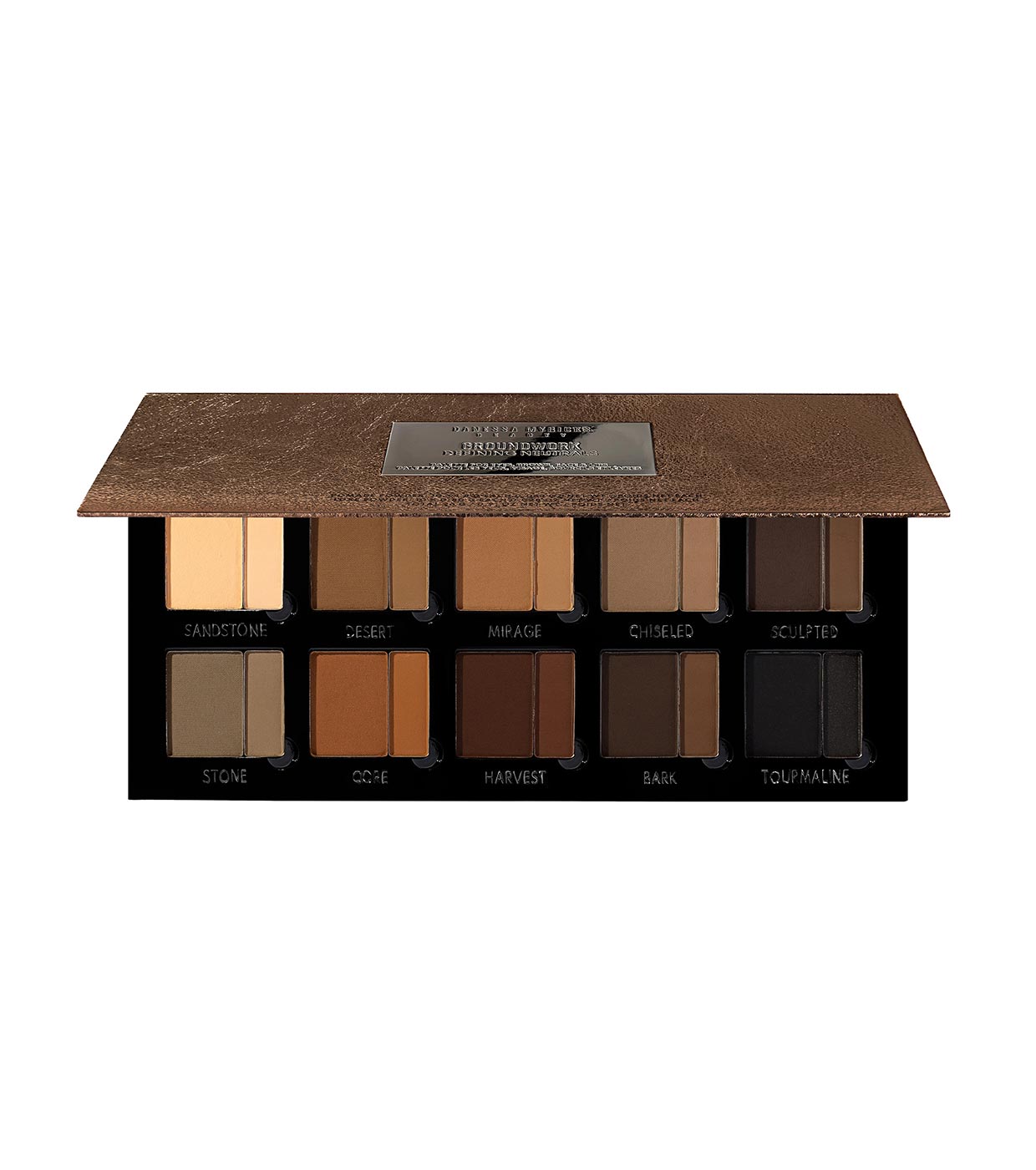 Groundwork Defining Neutrals é uma paleta multiuso para olhos, sobrancelhas, rosto e lábios que combina texturas em pó e creme-pó.