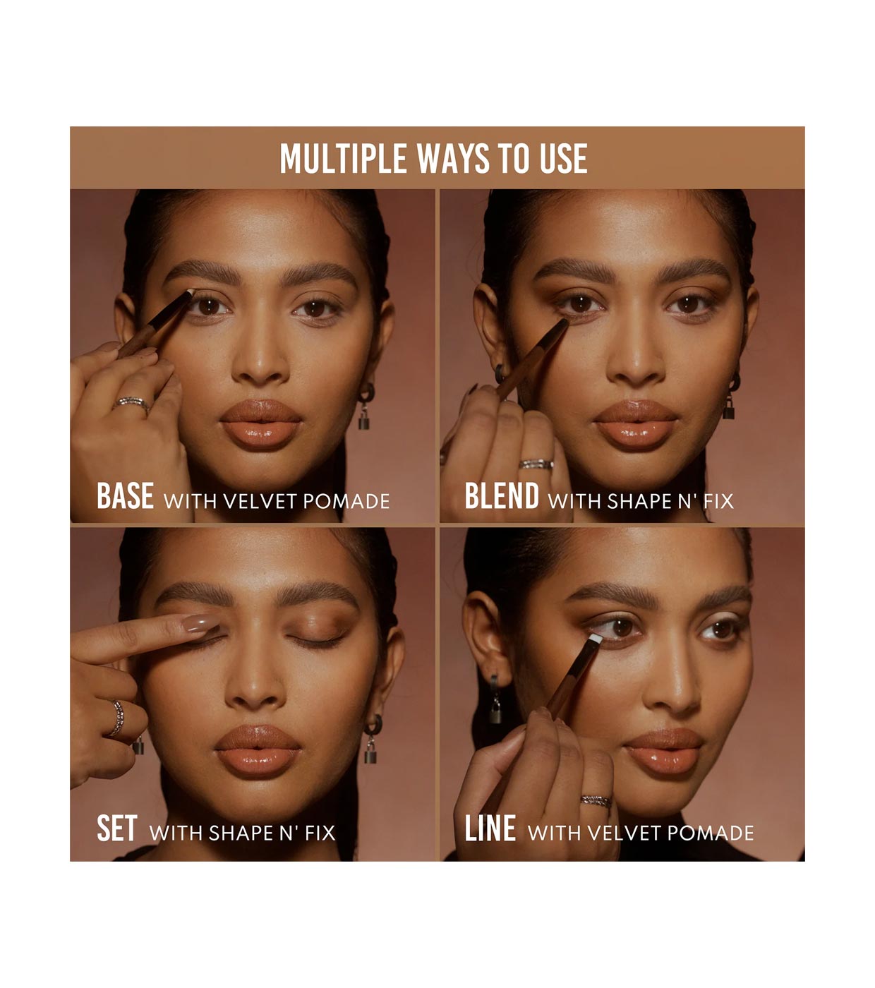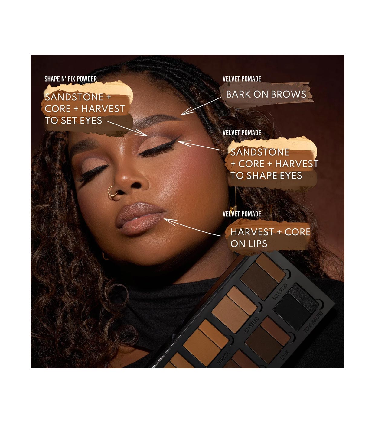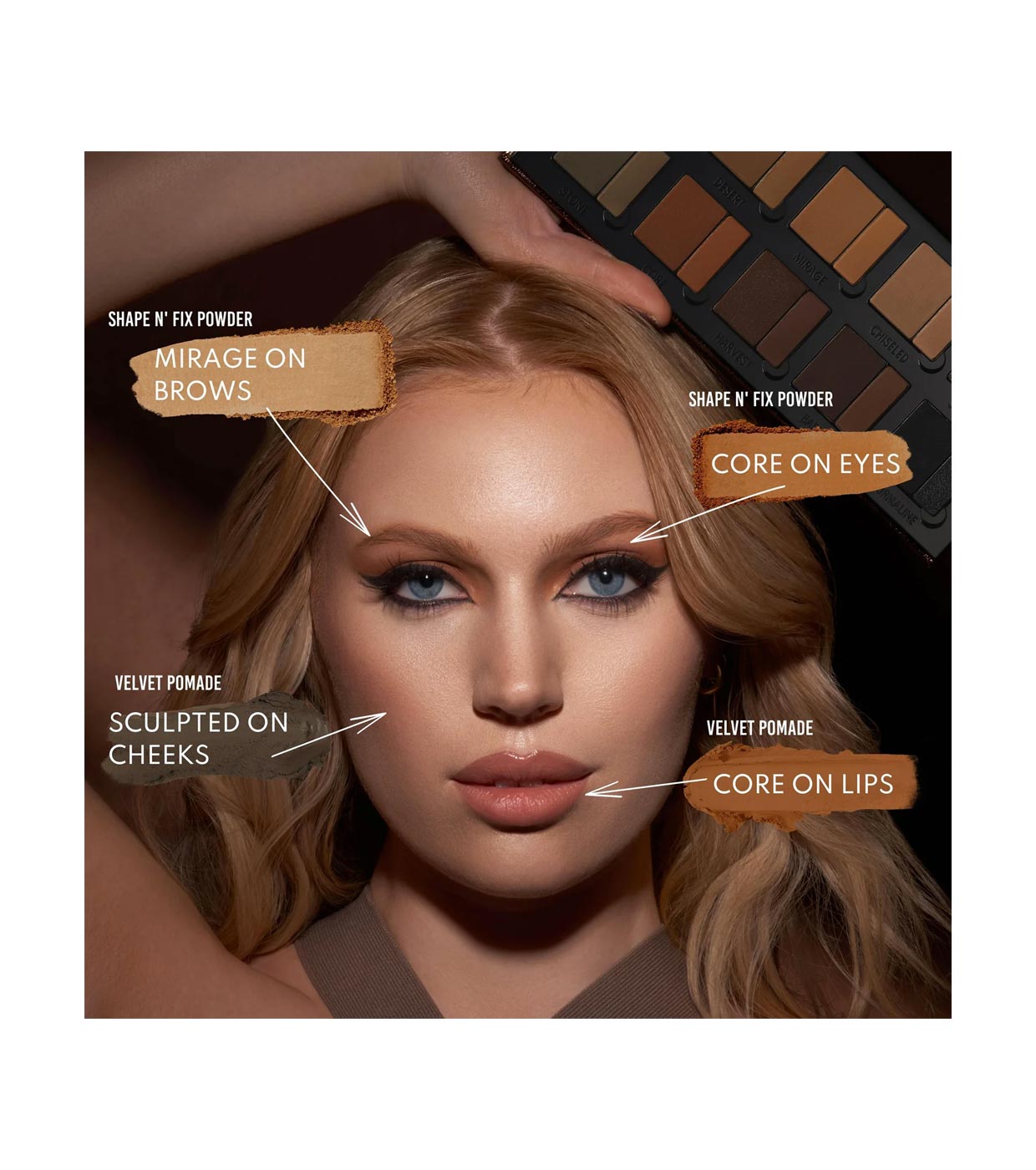 Combina 10 tons neutros quentes/frios e acabamentos mate/acetinados, em ambas as texturas para definir e realçar todo o nosso rosto.