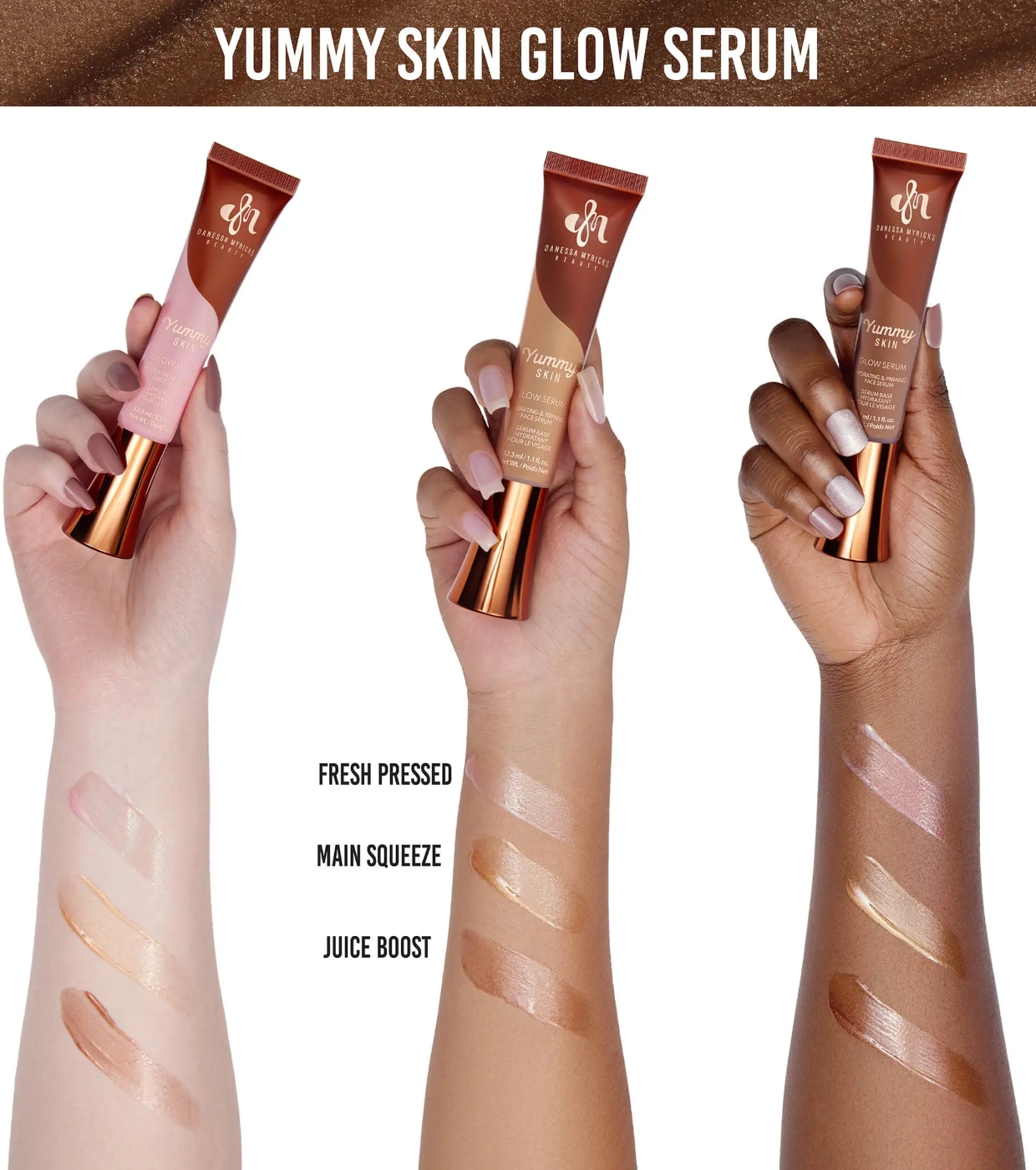 Este primer iluminador Yummy Skin Glow Serum da Danessa Myricks contém extratos de frutas ricos em antioxidantes como kiwi, pitaya, figo e romã para proteger a pele dos fatores ambientais.