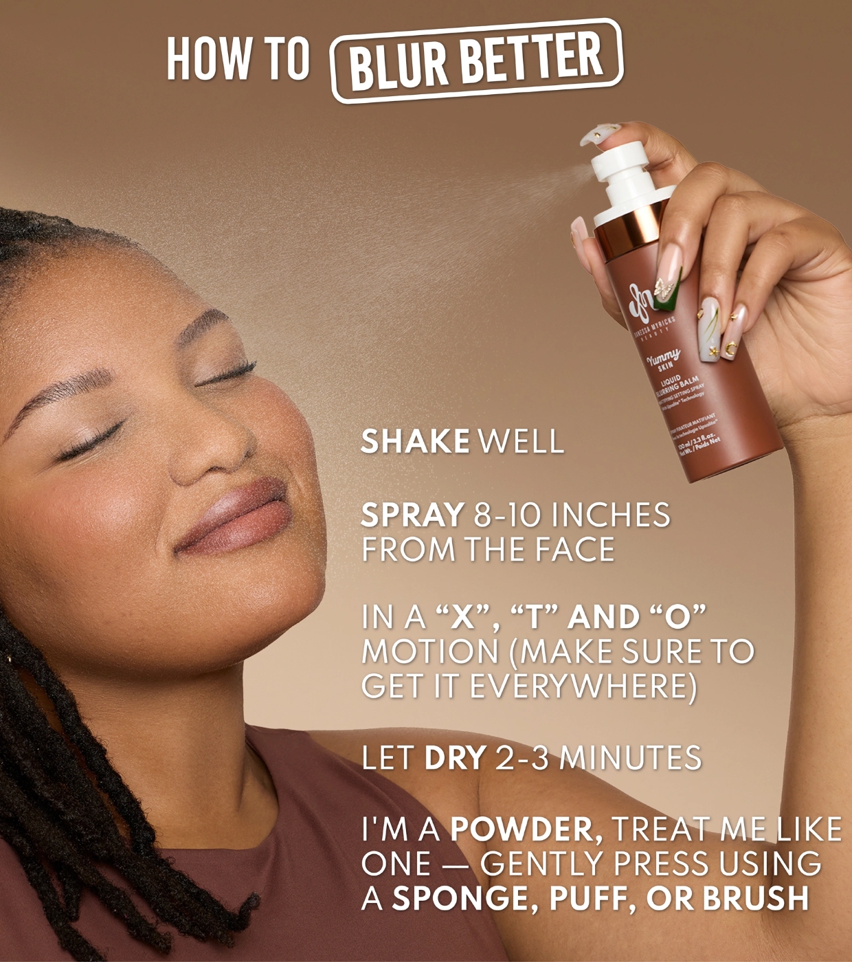 Descubra o Liquid Blurring Balm Liquid Blurring Balm, um spray fixador em pó perfeito para matificar, suavizar e fixar sua maquiagem sem pesar.