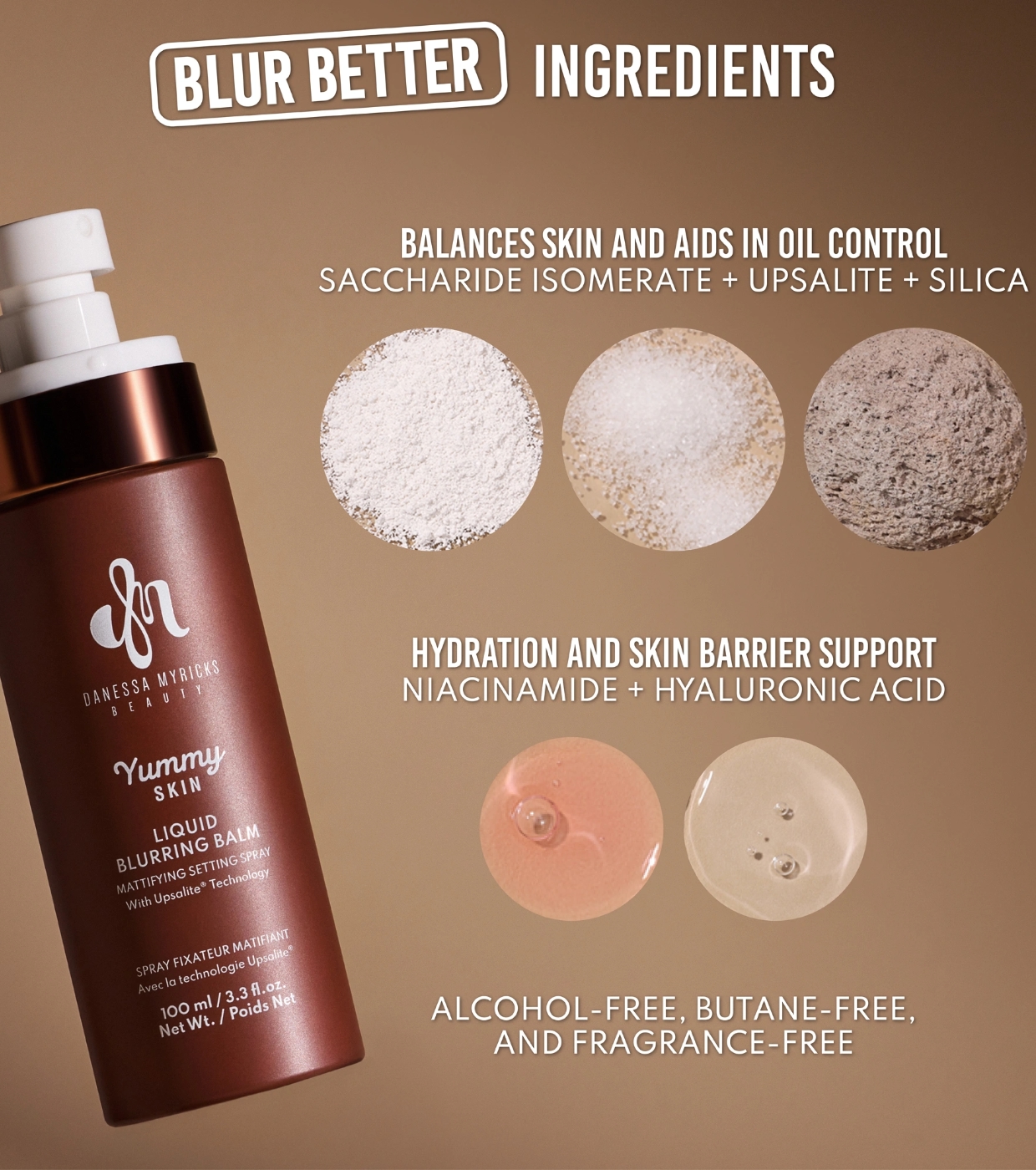 Graças à tecnologia Danessa Myricks, este spray ajuda a disfarçar a textura da pele, controlar o brilho e deixar um acabamento natural e sedoso o dia todo.