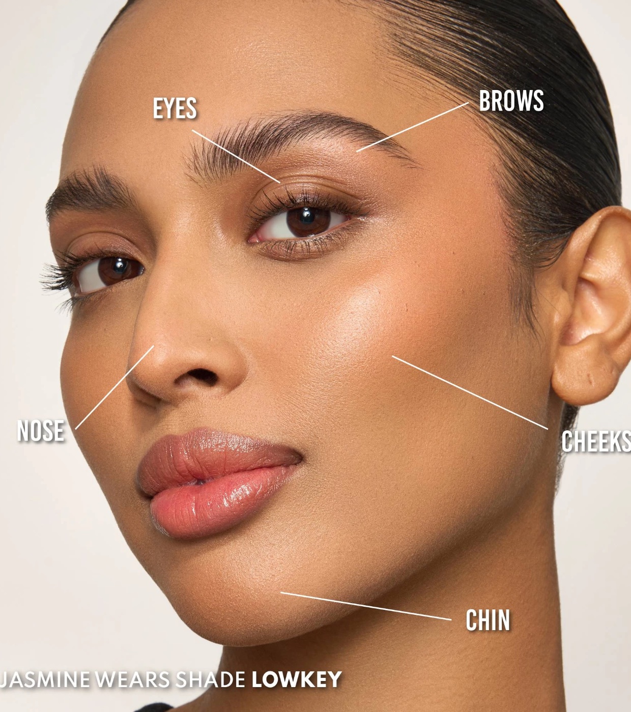Um bálsamo difuso com um toque de cor que se mistura e proporciona um brilho suave e dimensional em todo o rosto.