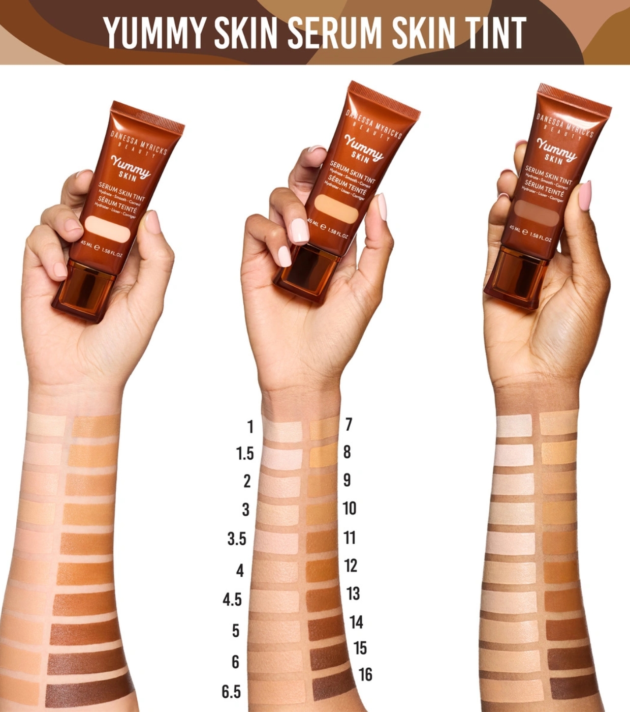 Conheça a linha de Colored Serums de Danessa Myricks , 16 tonalidades flexíveis que ajudam a corrigir sutilmente a vermelhidão e suavizar a textura irregular.