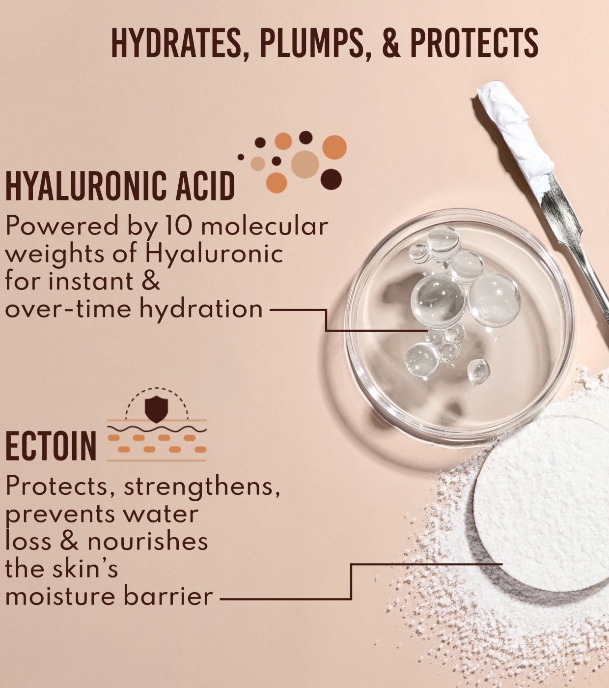 Sua fórmula avançada combina 10 pesos moleculares diferentes de ácido hialurônico, que atuam em sinergia para proporcionar hidratação profunda imediata e progressiva, ajudando a preencher visivelmente a pele e a melhorar sua elasticidade.