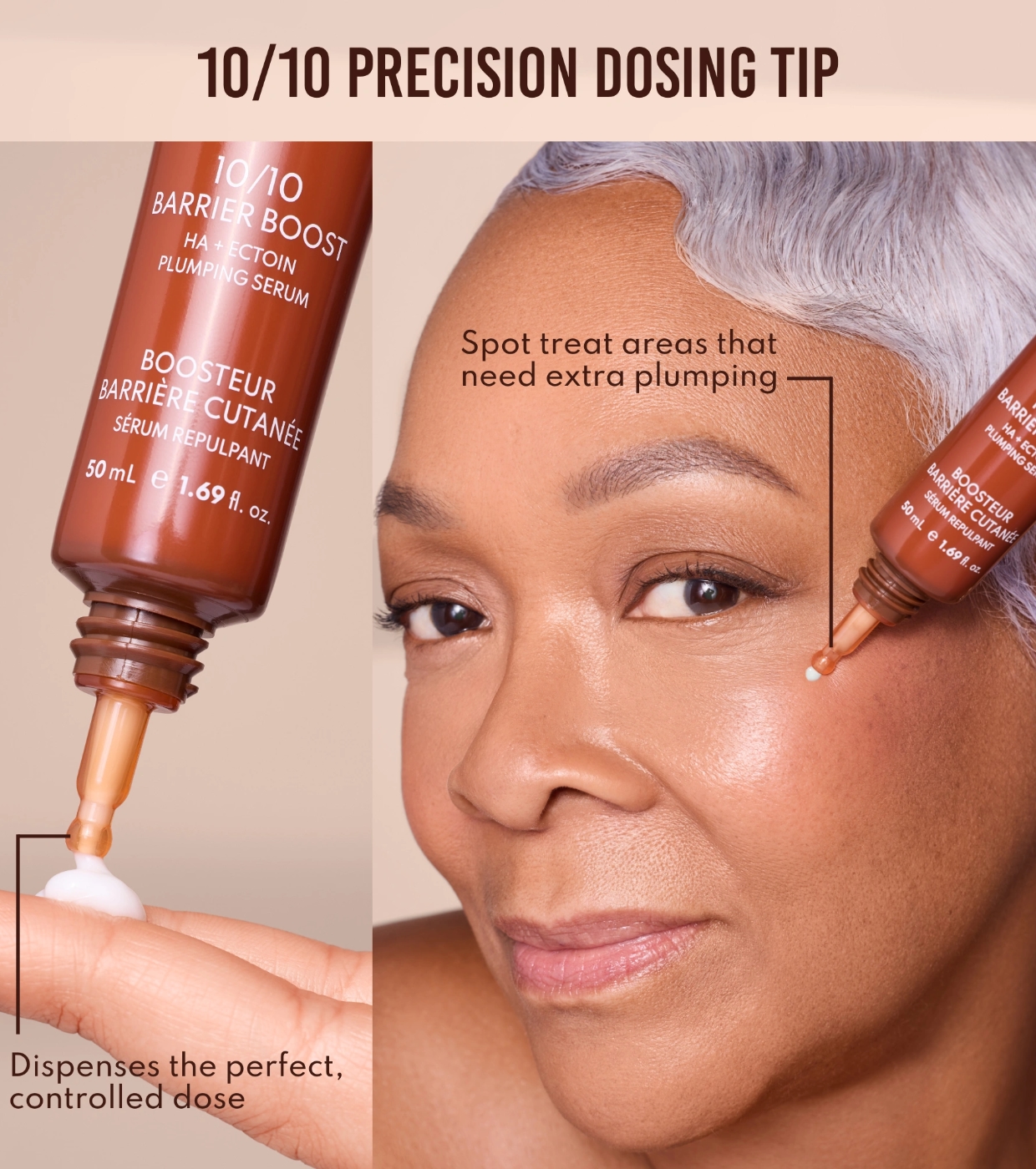 Após a limpeza, aplique uma quantidade equivalente a uma moeda de dez centavos no rosto de manhã e à noite como primeiro passo da sua rotina de cuidados com a pele.