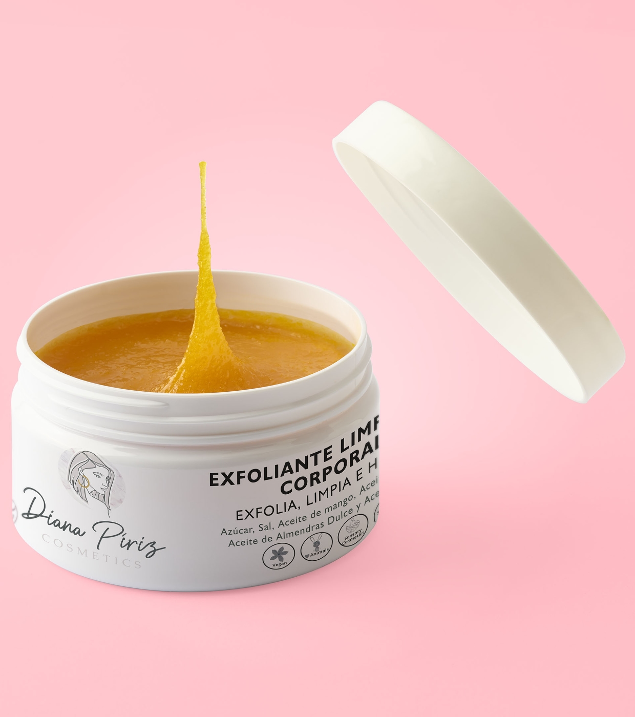 Este esfoliante corporal da Diana Piriz é um 3 em 1, pois remove as células mortas, estimula a circulação e deixa a pele macia, nutrida e visivelmente mais luminosa, graças à sua fórmula rica em açúcar, óleos naturais e extratos tropicais.