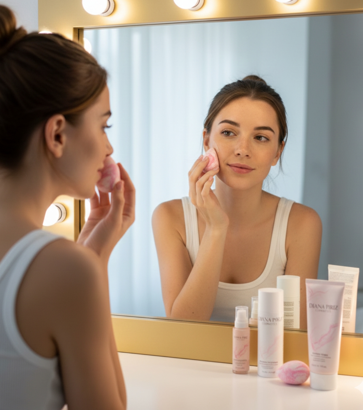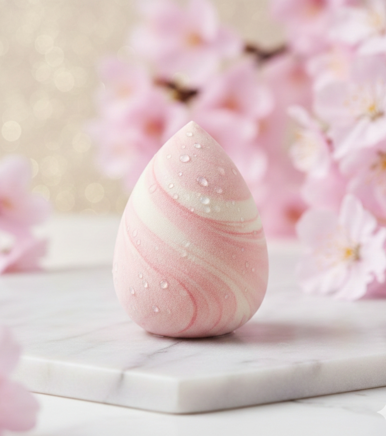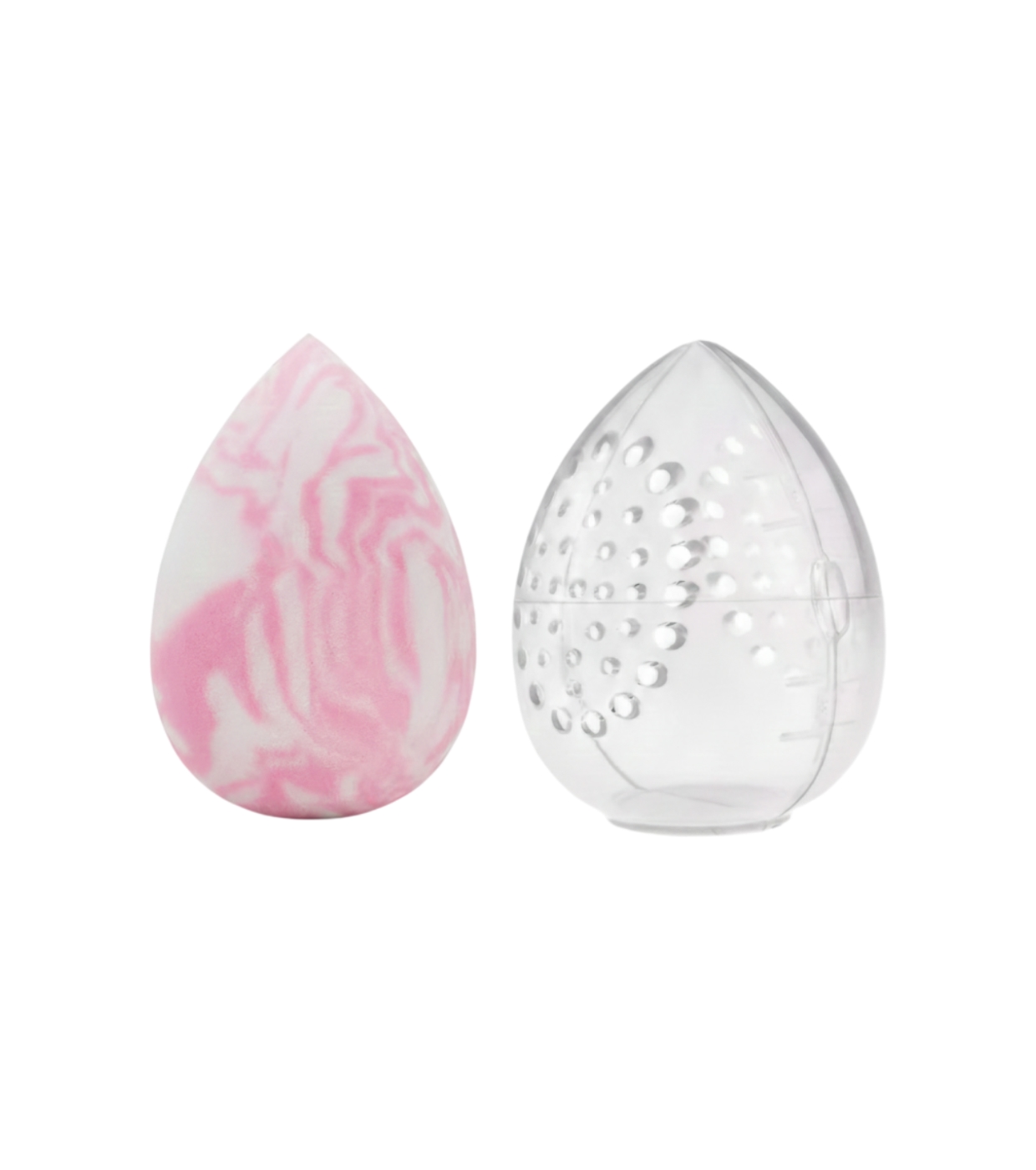 A esponja de maquiagem Pink Sakura e seu estojo ventilado, da Diana Piriz, são uma ferramenta profissional sem látex, feita de poliuretano hidrofílico, ideal para aplicar produtos líquidos, cremosos e em pó.