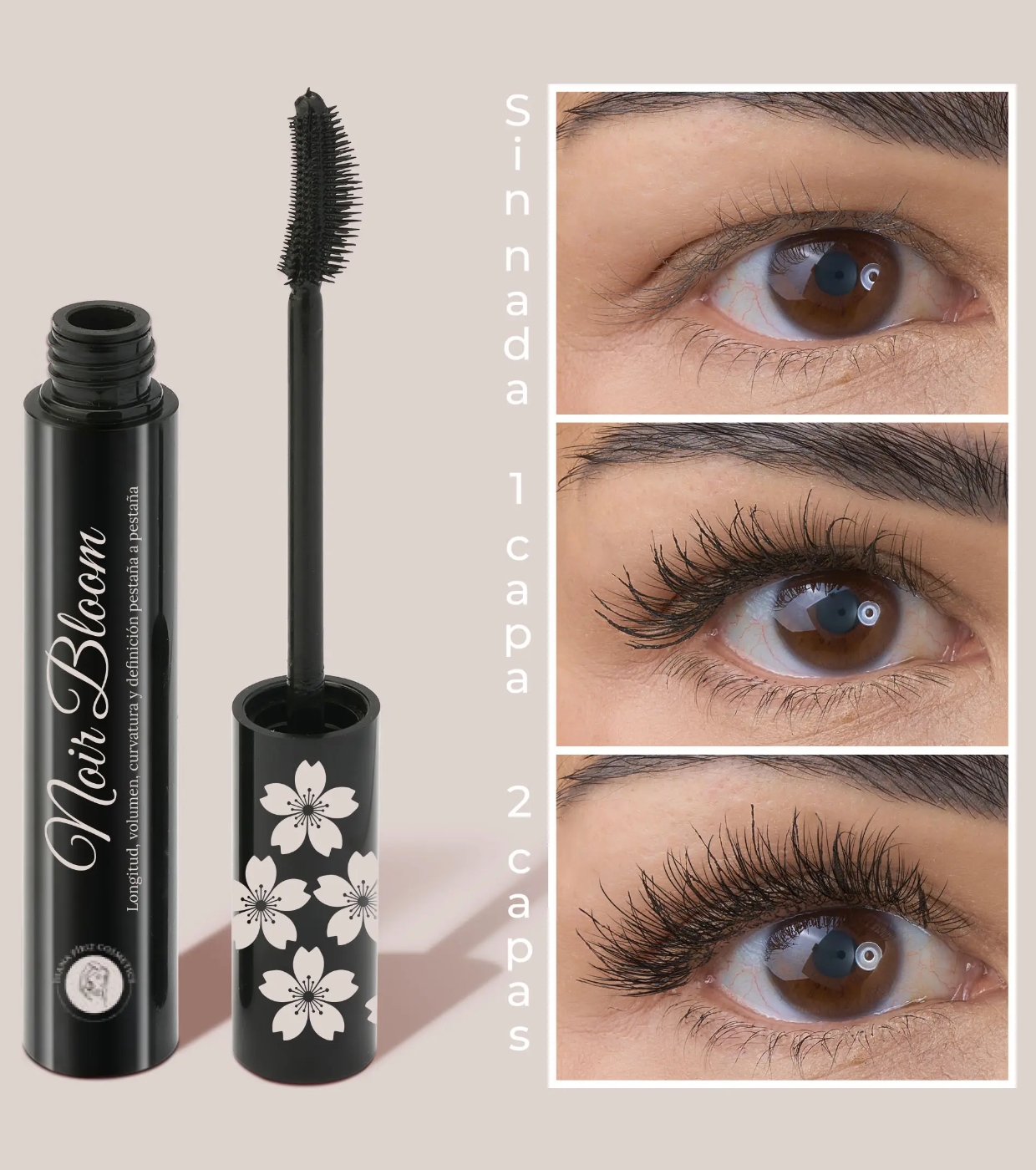 Noir Bloom de Diana Piriz é uma máscara para cílios de última geração que proporciona um acabamento sofisticado, definido e de longa duração.