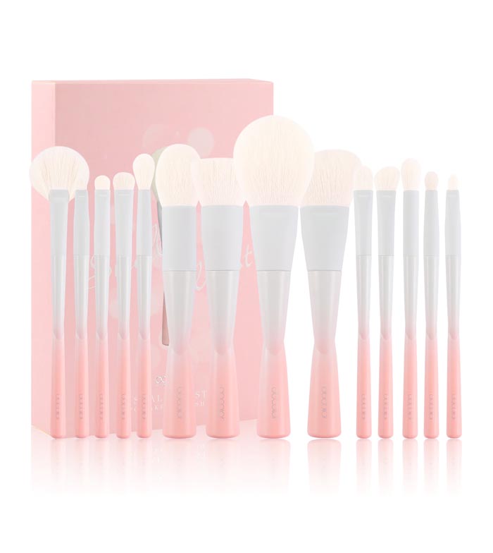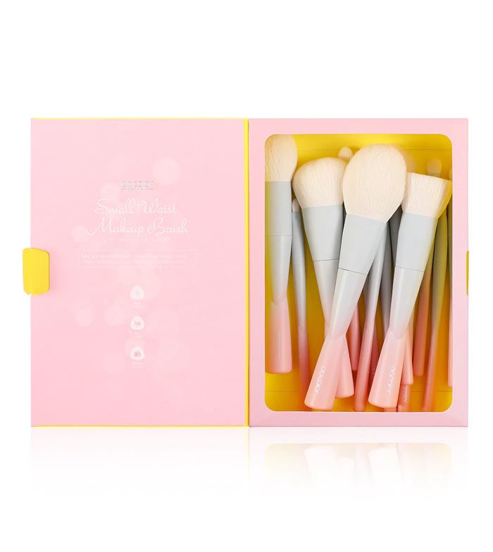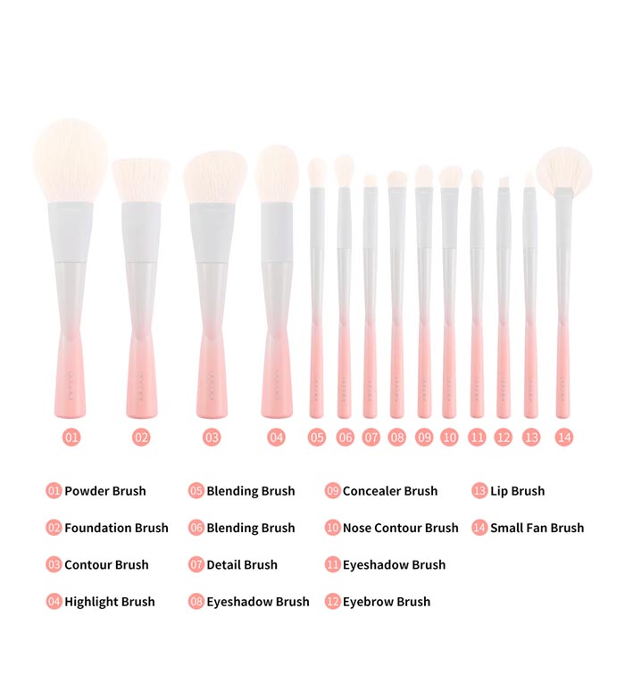 Contém um total de 14 pincéis, cada um com uma forma cuidadosa para atingir sua função correta.