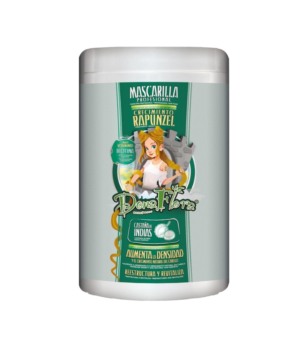 A máscara capilar de crescimento intensivo Rapunzel da Dona Flora foi especialmente formulada para estimular o crescimento capilar, fortalecer a fibra capilar e reduzir a queda de cabelo.