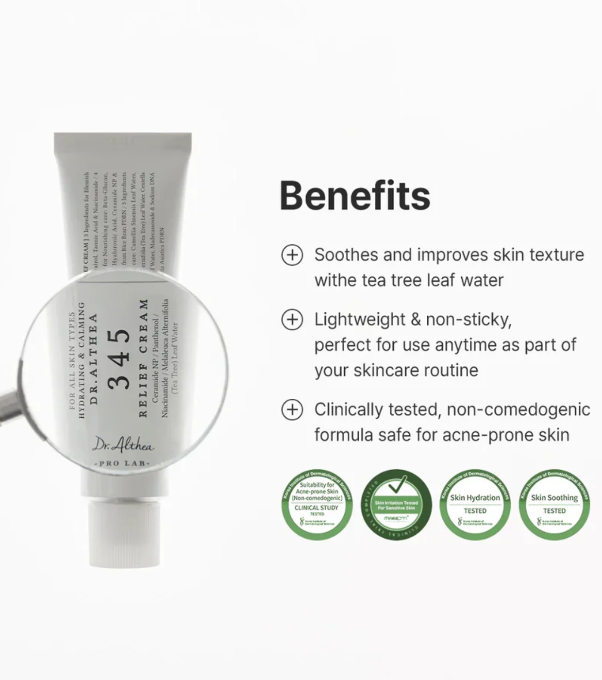 Dr. Althea 345 Relief Cream é uma solução completa para peles que precisam de reparação, alívio e hidratação sem irritação, ideal para acompanhar processos de recuperação após acne ou sensibilidade extrema.