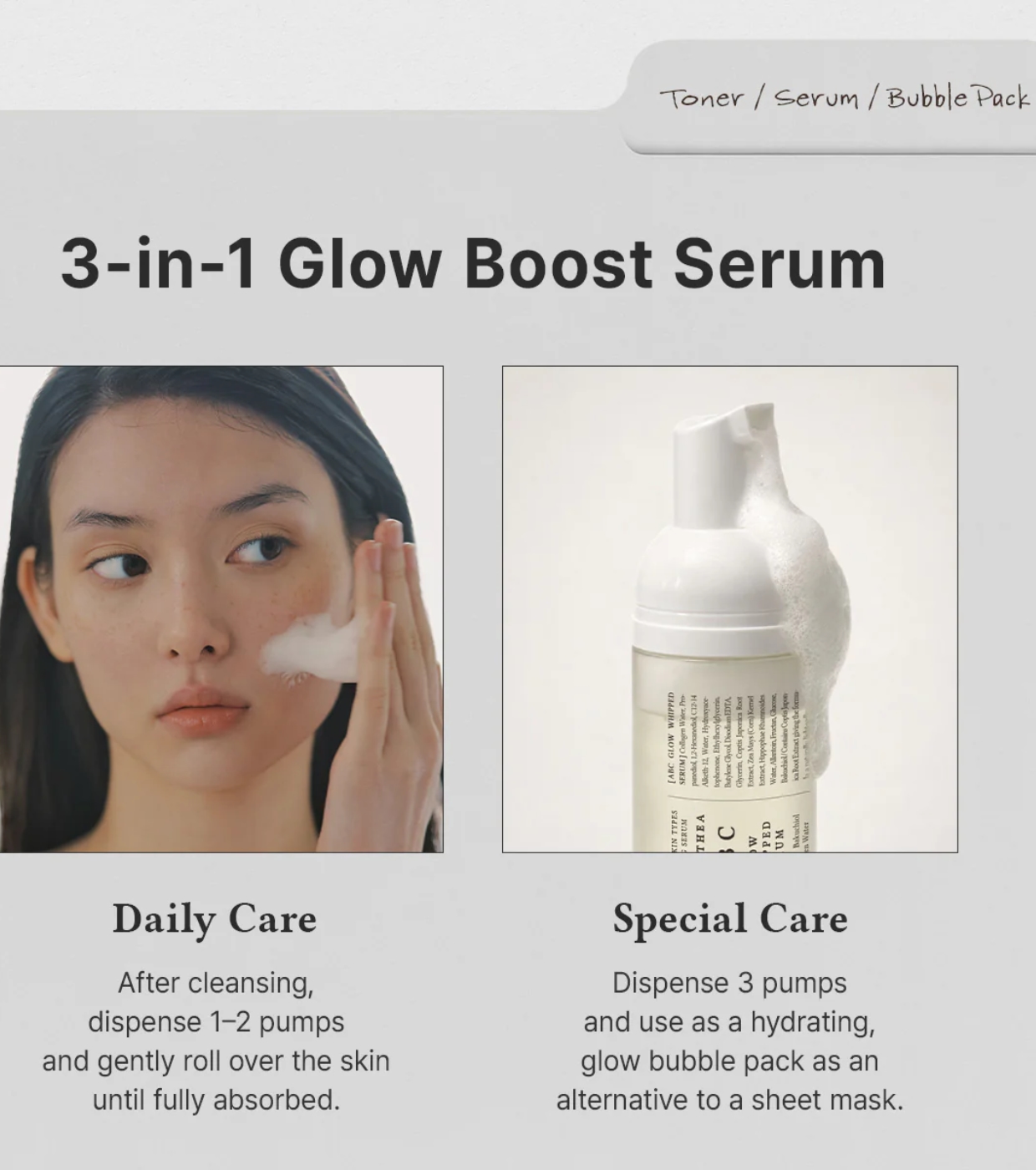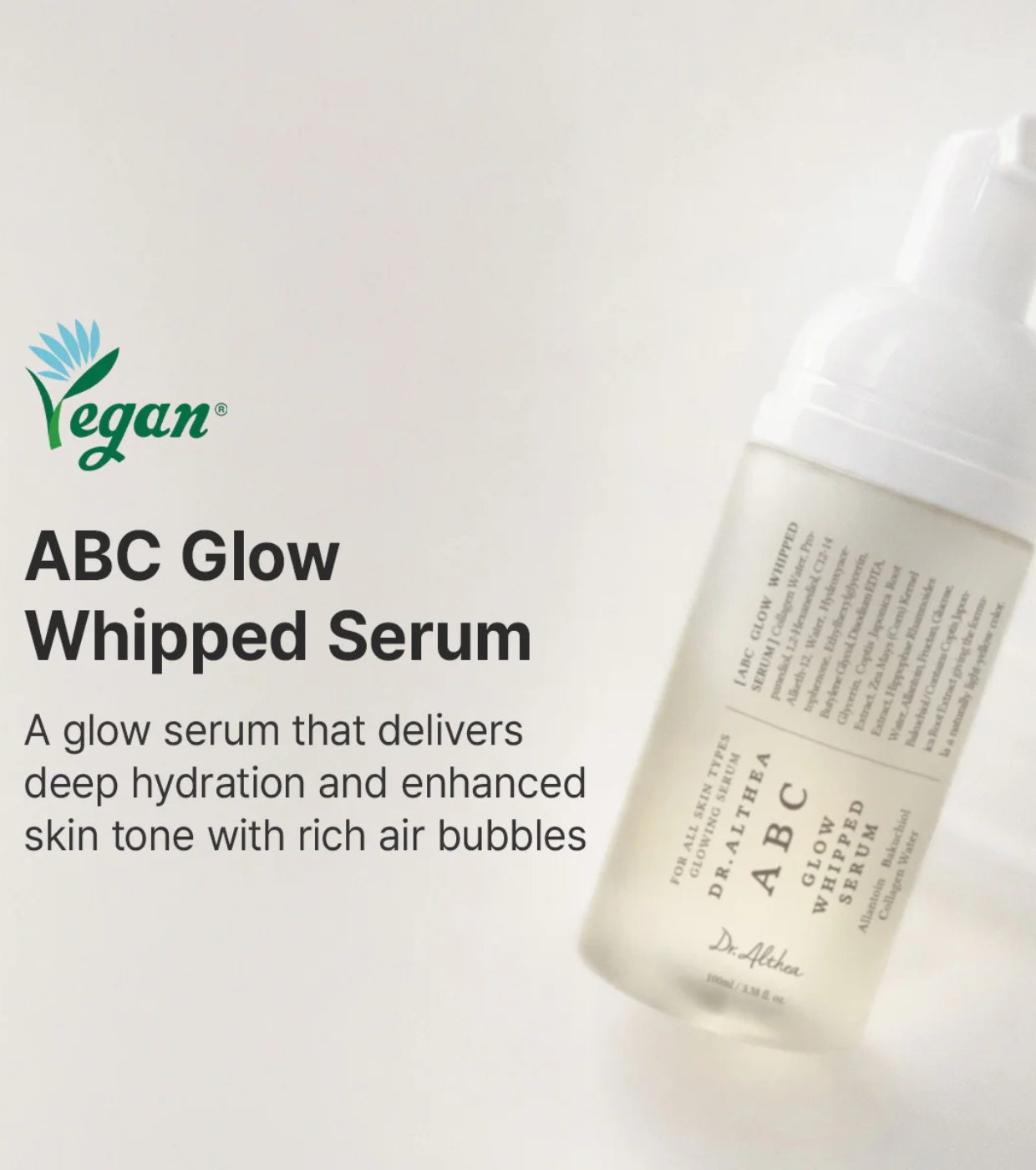 Um sérum inovador com textura de espuma da Dr. Althea que se transforma em água, combinando a hidratação de um tônico com o efeito luminoso de um sérum em uma única etapa.