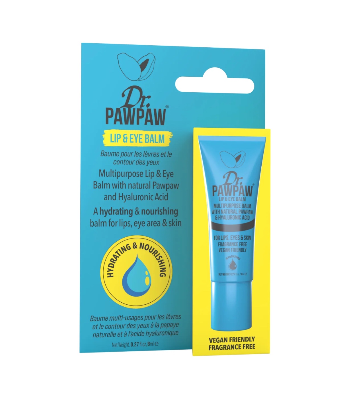 Experimente hidratação durante todo o dia com este protetor labial inovador e multifuncional do Dr. Paw Paw vegano para lábios e a pele delicada ao redor dos olhos.