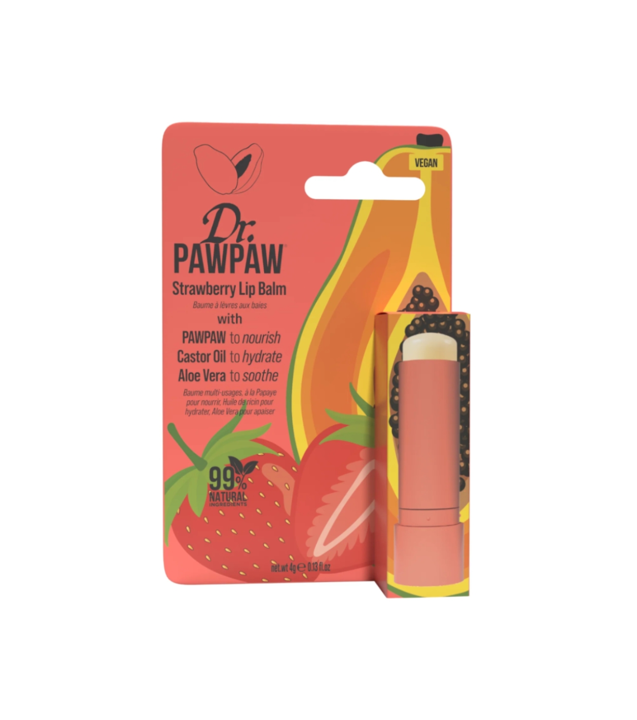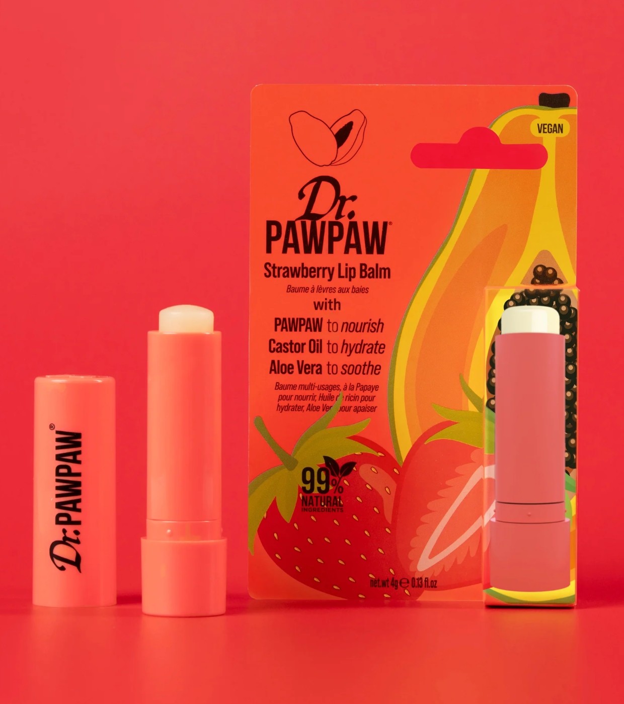 Strawberry O protetor labial em bastão de morango é muito mais do que um hidratante: é um bálsamo milagroso vegano e 99% natural, perfeito para nutrir, amaciar e proteger seus lábios com um delicioso e suculento aroma de morango.