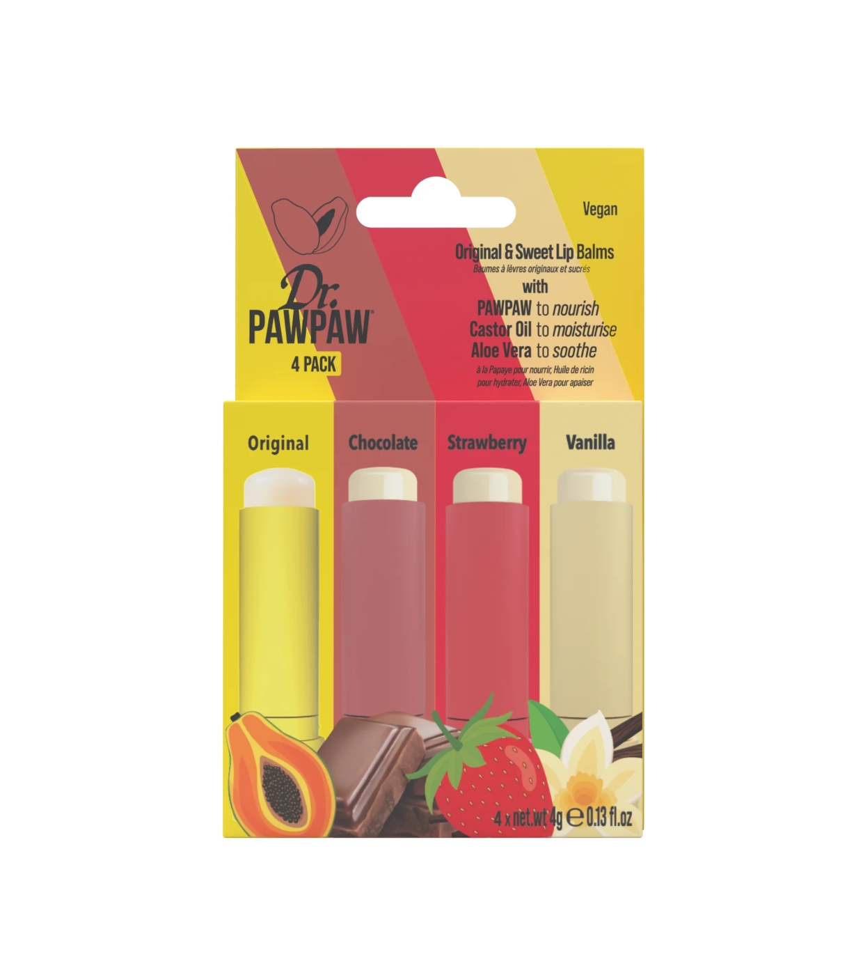 Descubra o conjunto de bálsamo labial Dr. PAWPAW Dr. PAWPAW , a maneira perfeita de mimar seus lábios com ingredientes naturais e aromas deliciosos!