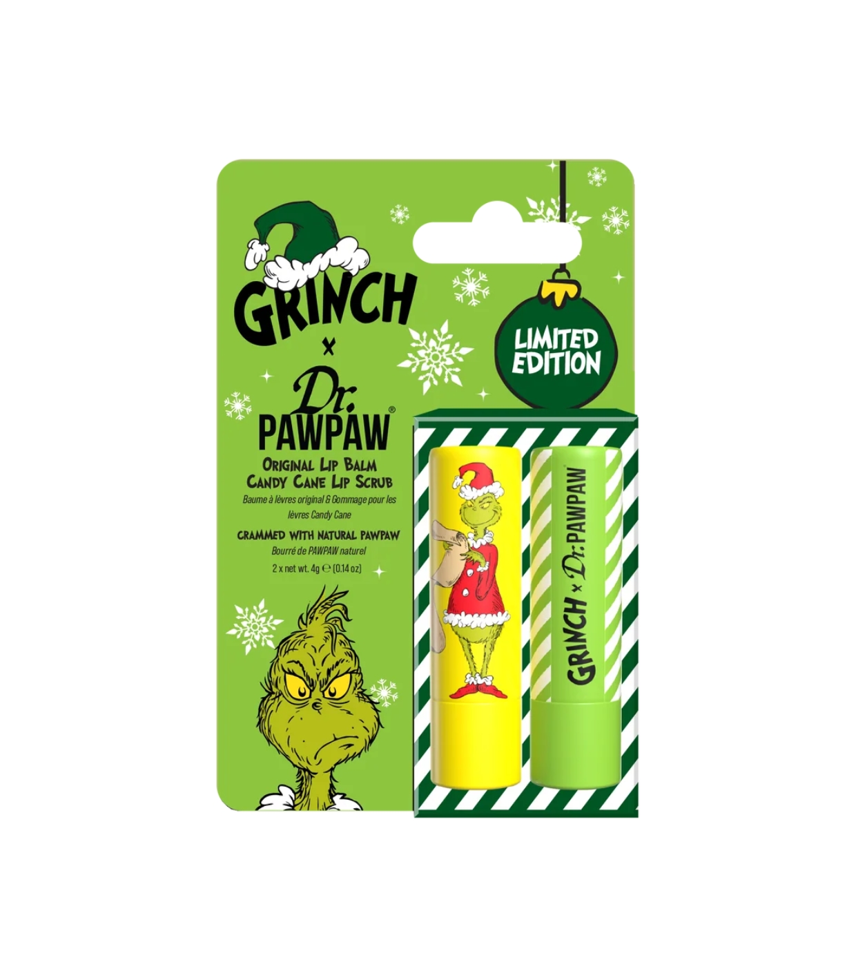 Whoville apresenta a dupla mais essencial da temporada: o Grinch x Dr.PAWPAW Whoville Duo , um conjunto festivo que combina esfoliação, hidratação e cuidado natural para deixar seus lábios macios, confortáveis e prontos para qualquer celebração.