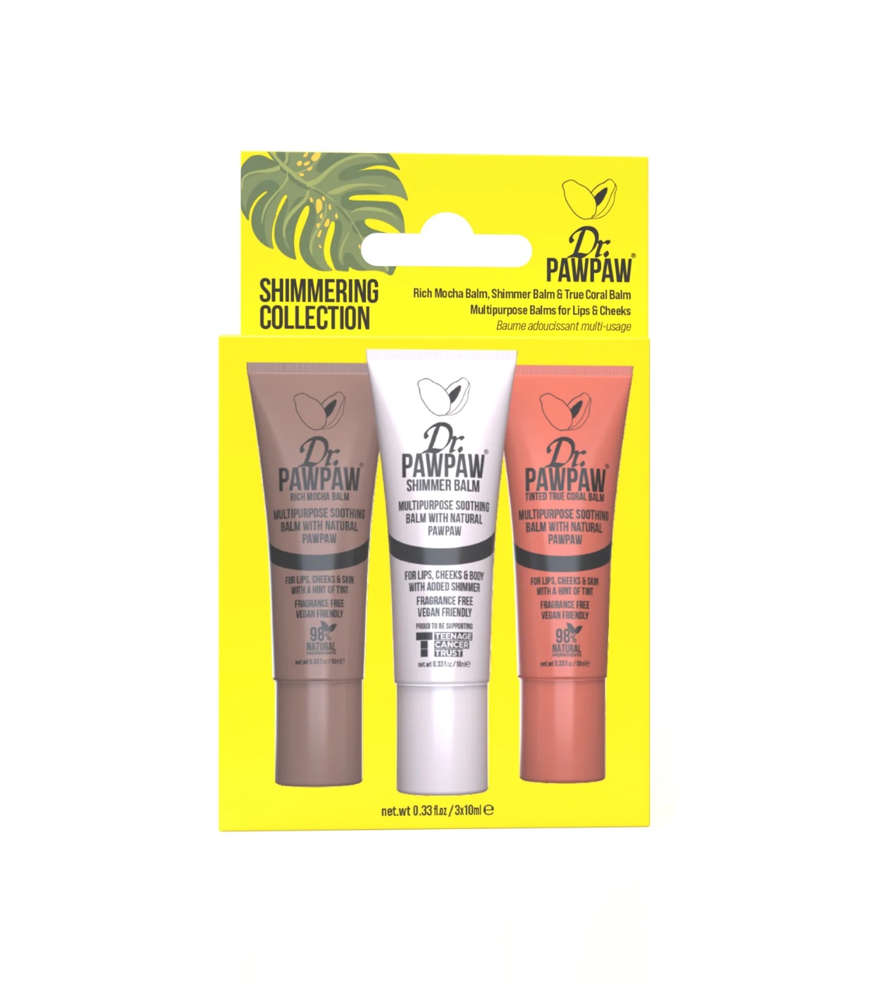 Prepare-se para brilhar dia ou noite com o trio de protetores labiais Shimmering Collection da Dr. Paw Paw .