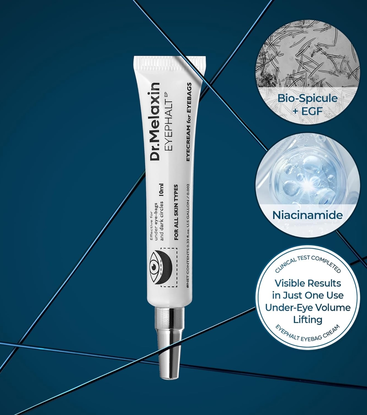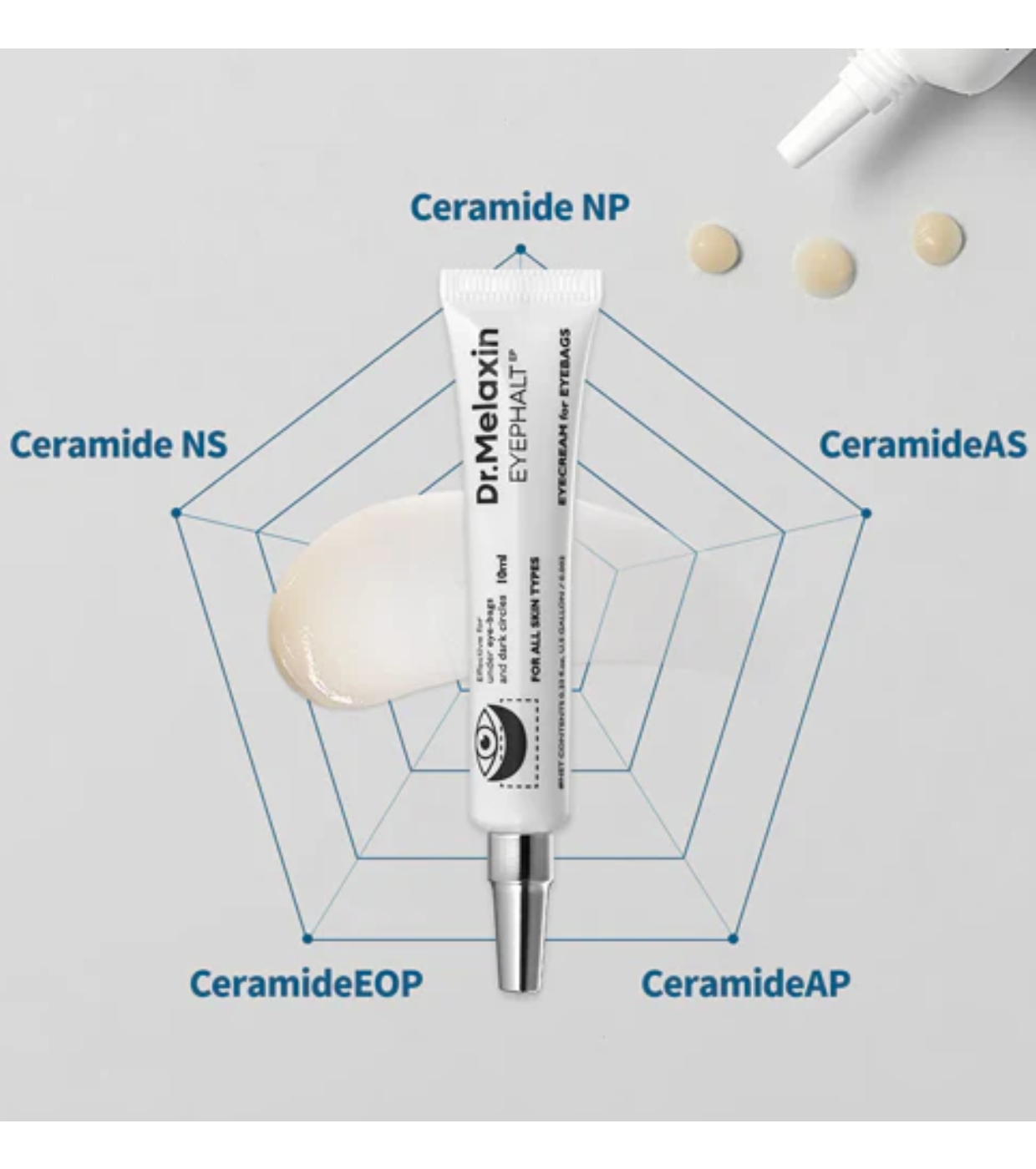 Este creme para olheiras Eyephalt da Dr.Melaxin é um produto 3 em 1 que levanta bolsas sob os olhos, ilumina e fortalece a barreira.