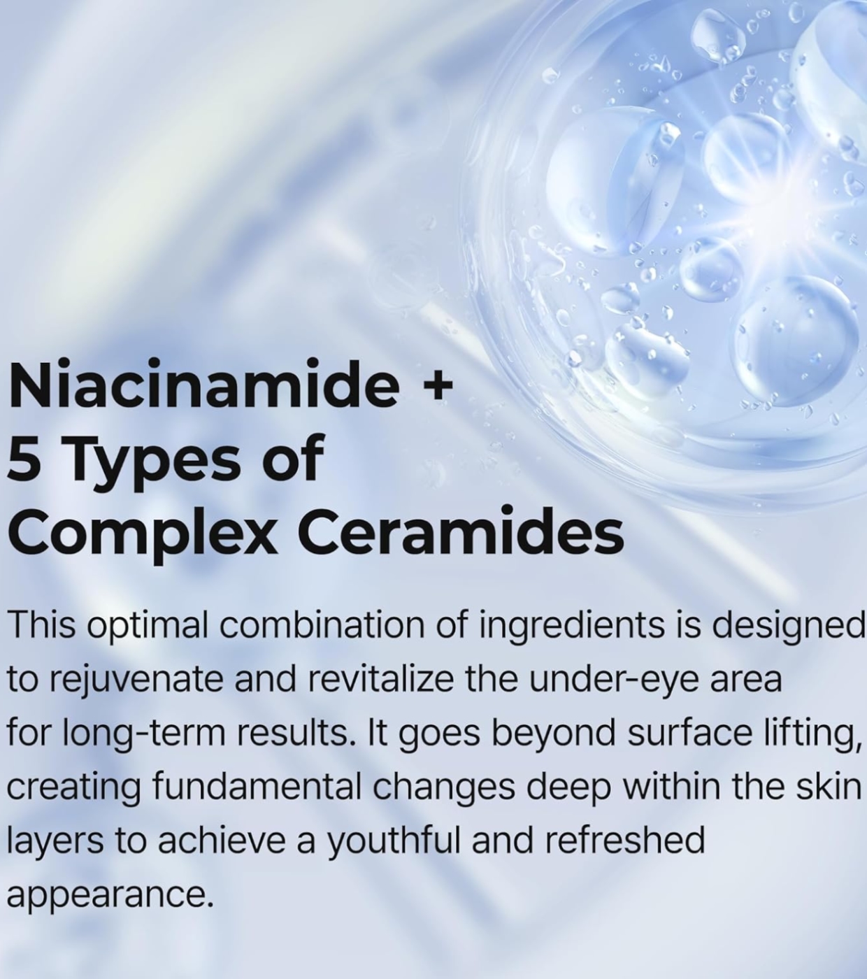 Este creme reduz significativamente as bolsas sob os olhos, melhora as olheiras e fortalece a barreira da pele para uma aparência mais suave e jovem.