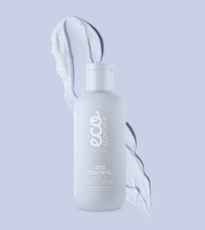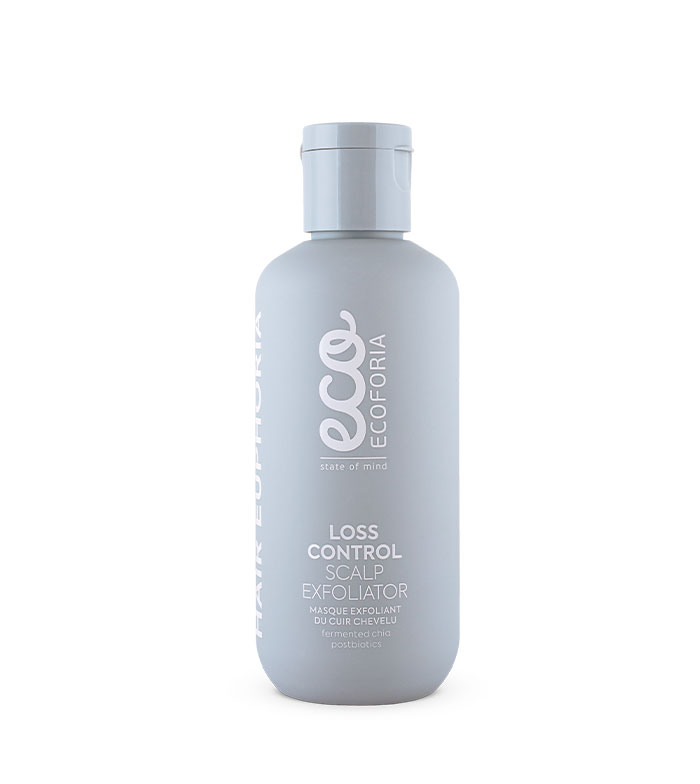 Esfoliante anti-queda para o couro cabeludo com pós-bióticos Ecoforia Loss Control.