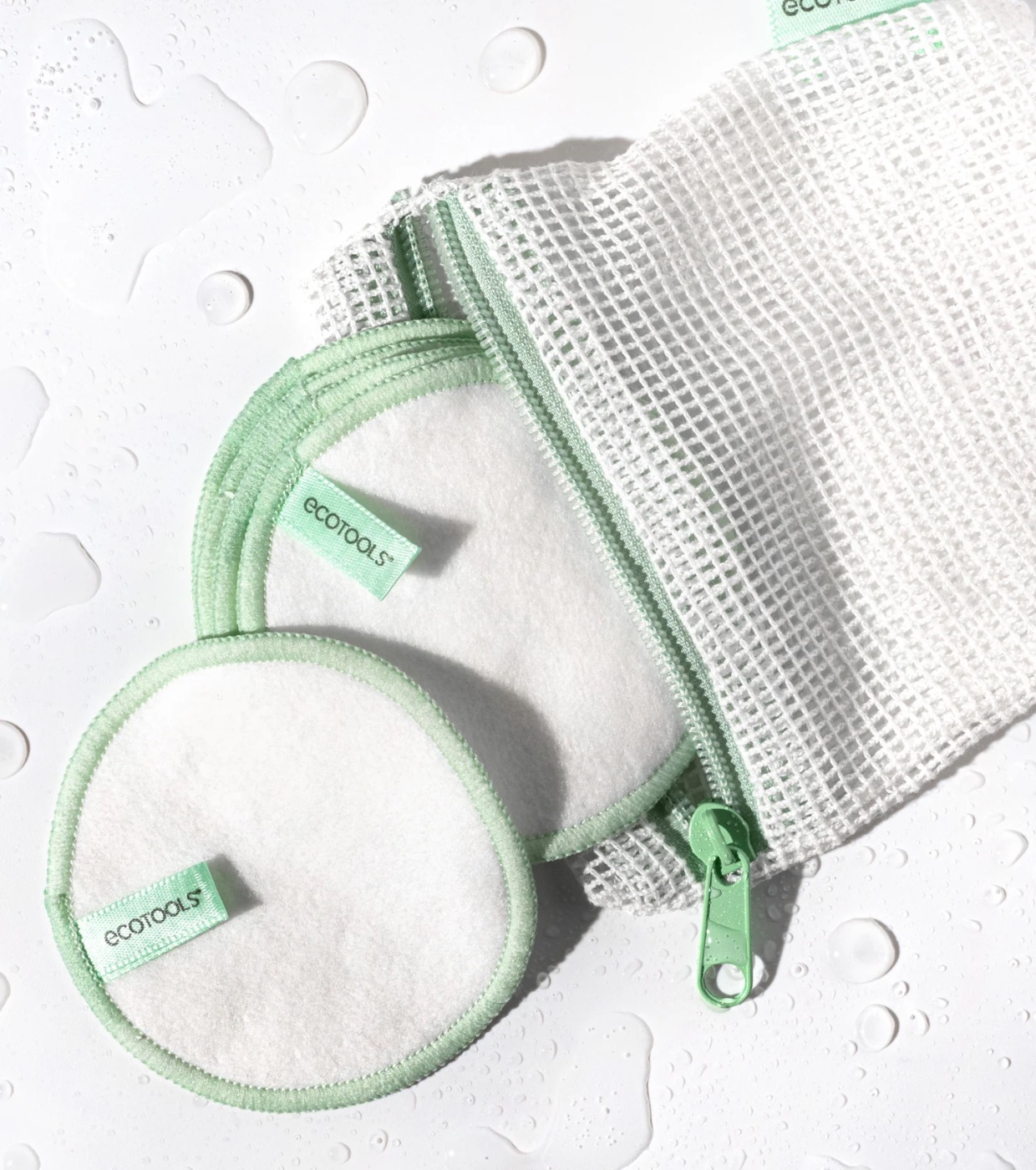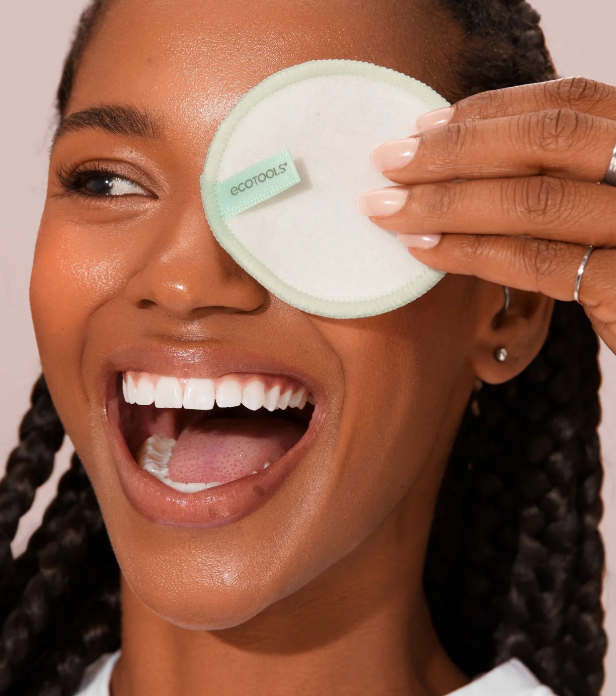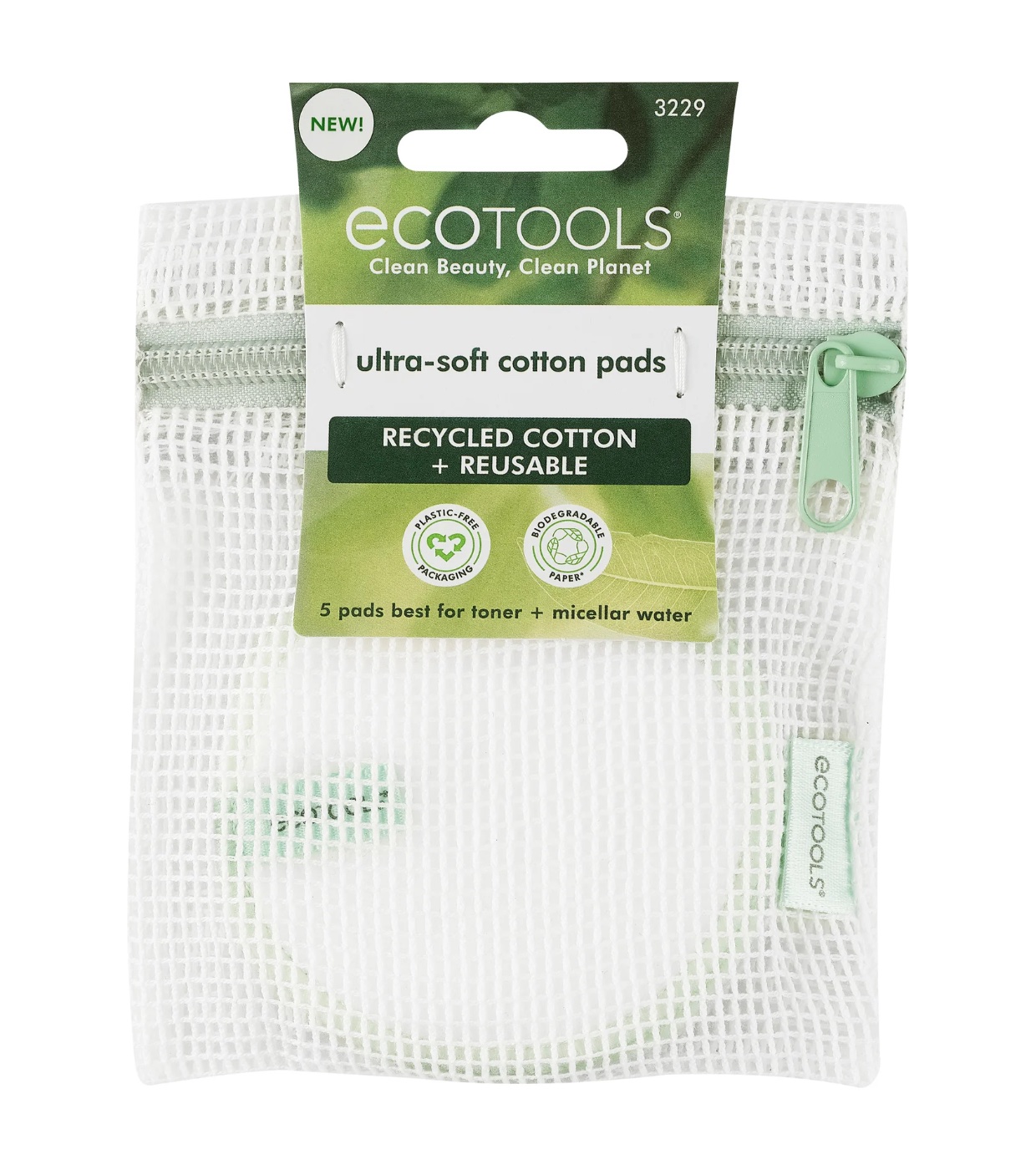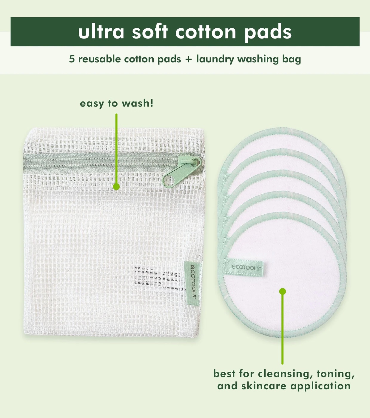 EcoTools Almofadas removedoras de maquiagem reutilizáveis de algodão macio ajudam a limpar e aplicar produtos para a pele.