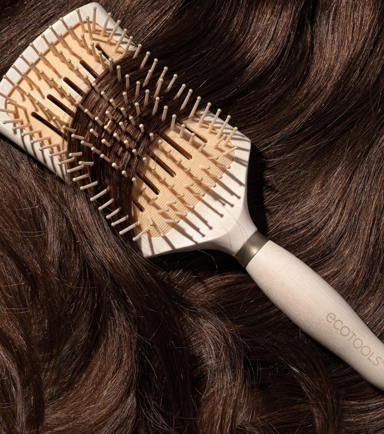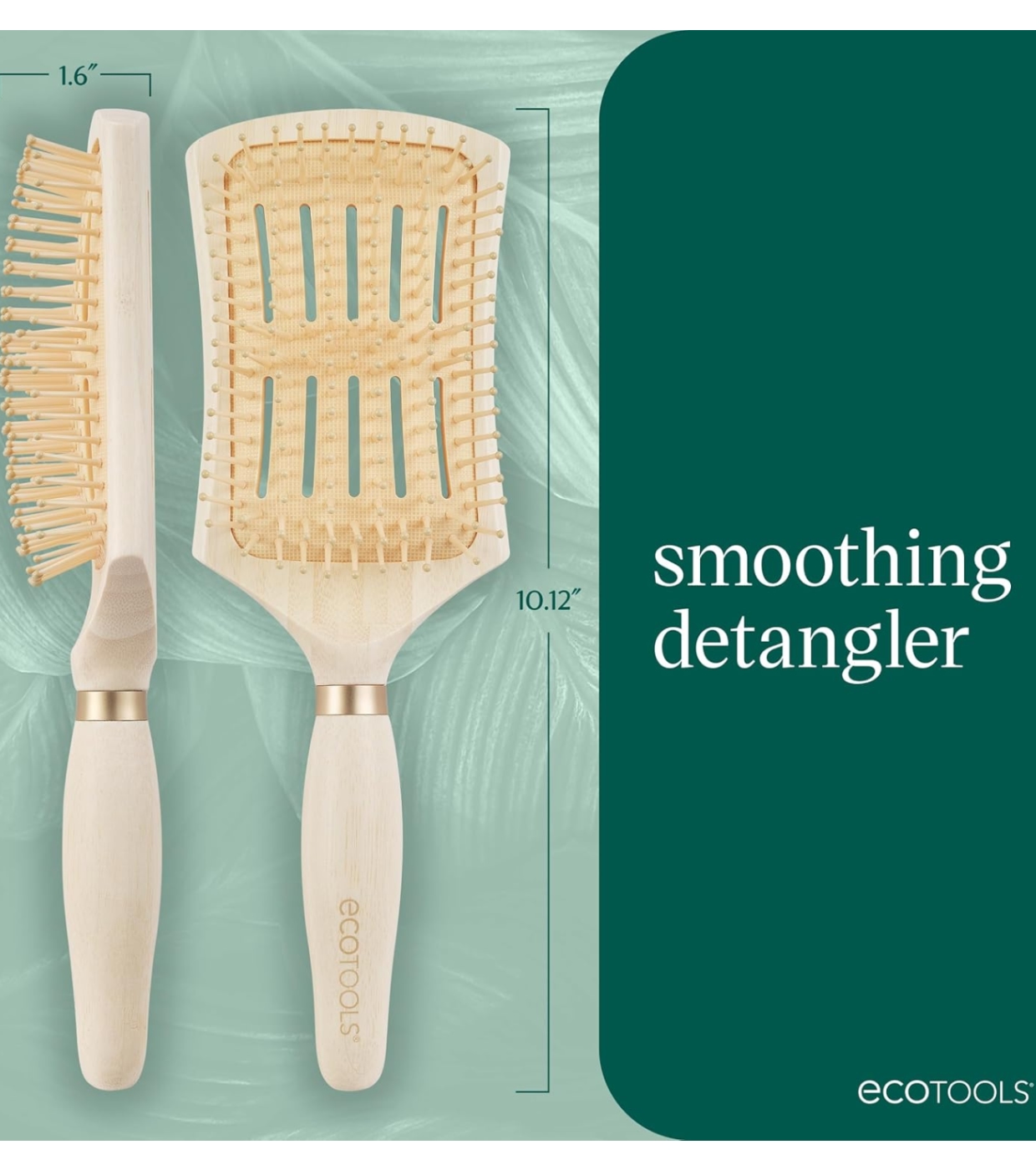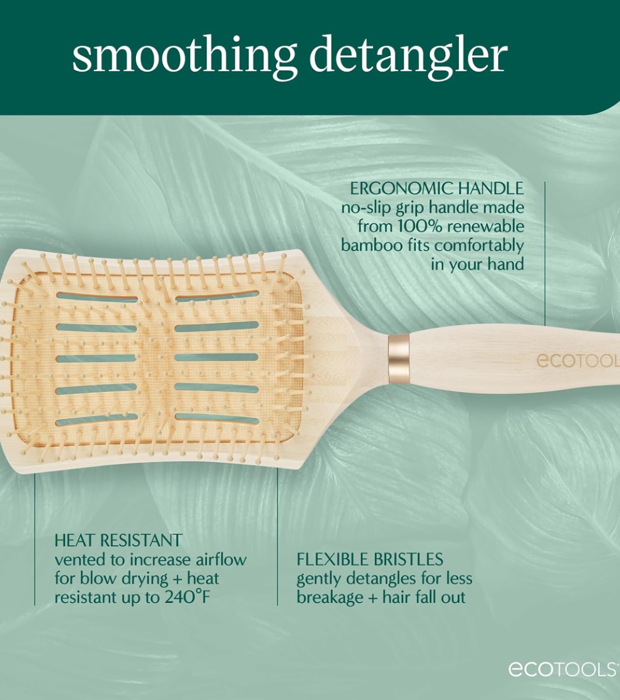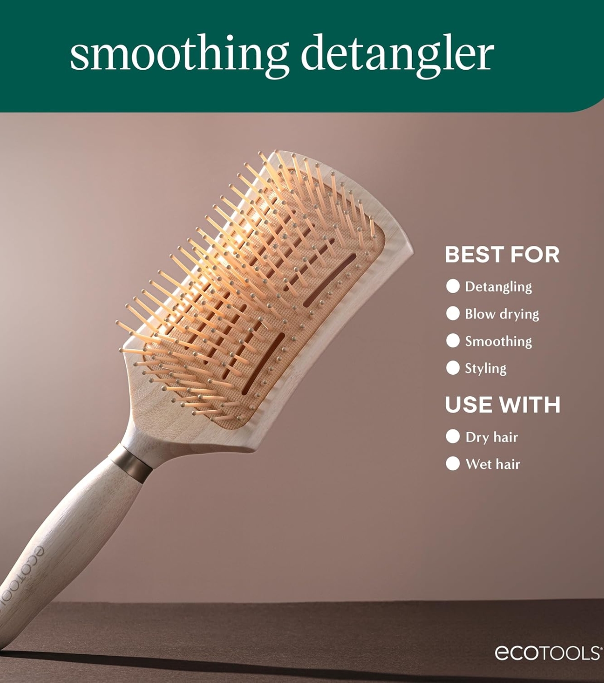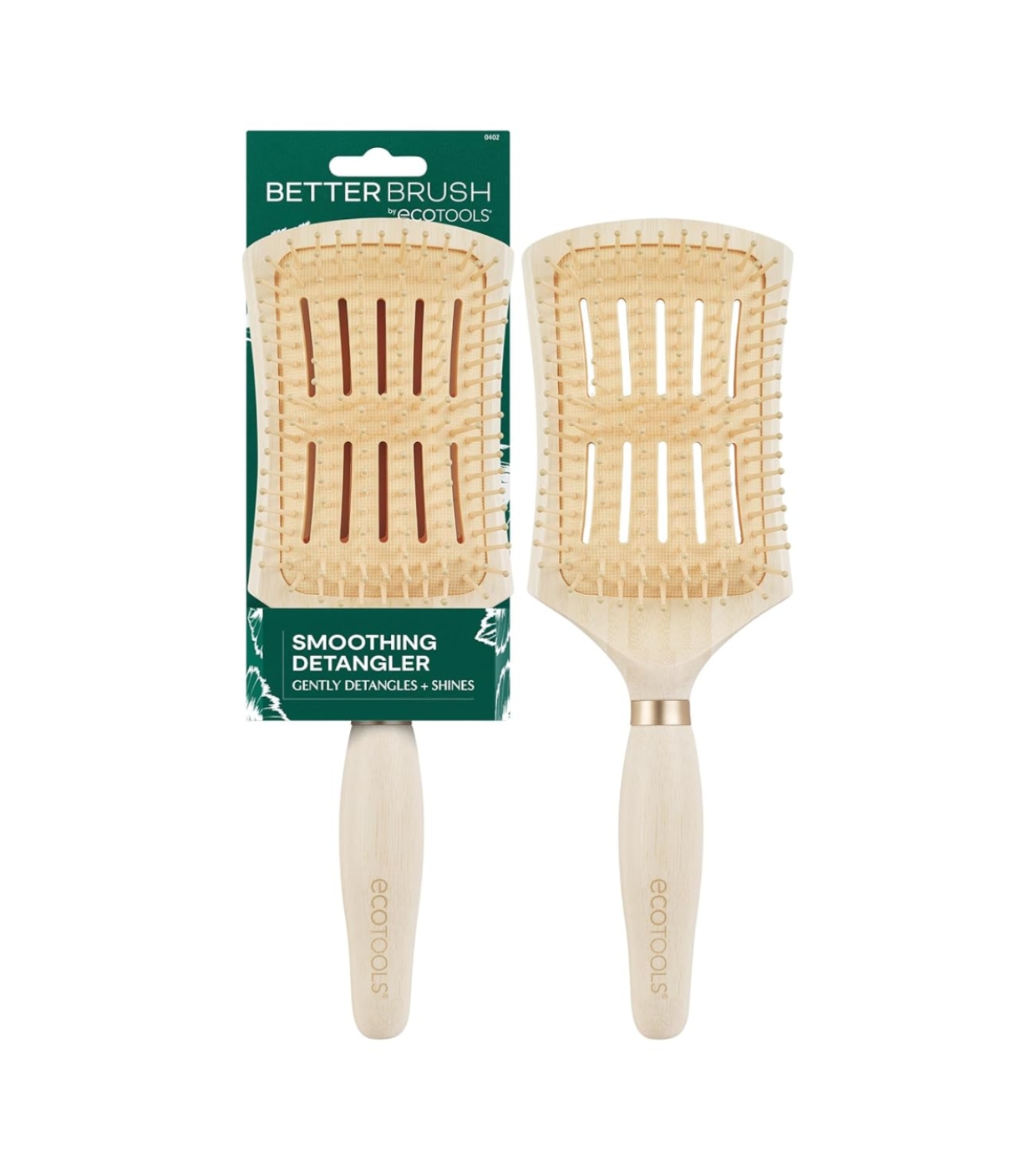 A EcoTools Smoothing Detangler é a escova raquete ideal para desembaraçar suavemente os cabelos, tanto molhados quanto secos.