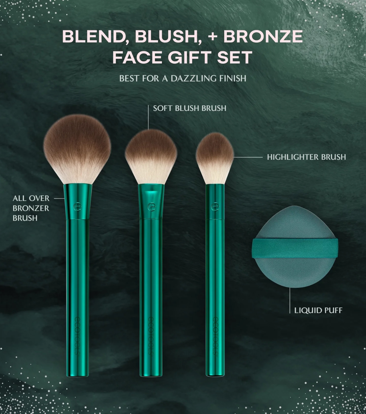 Conjunto de pincéis Blend, Blush, + Bronze Face Definido por Ecotools.