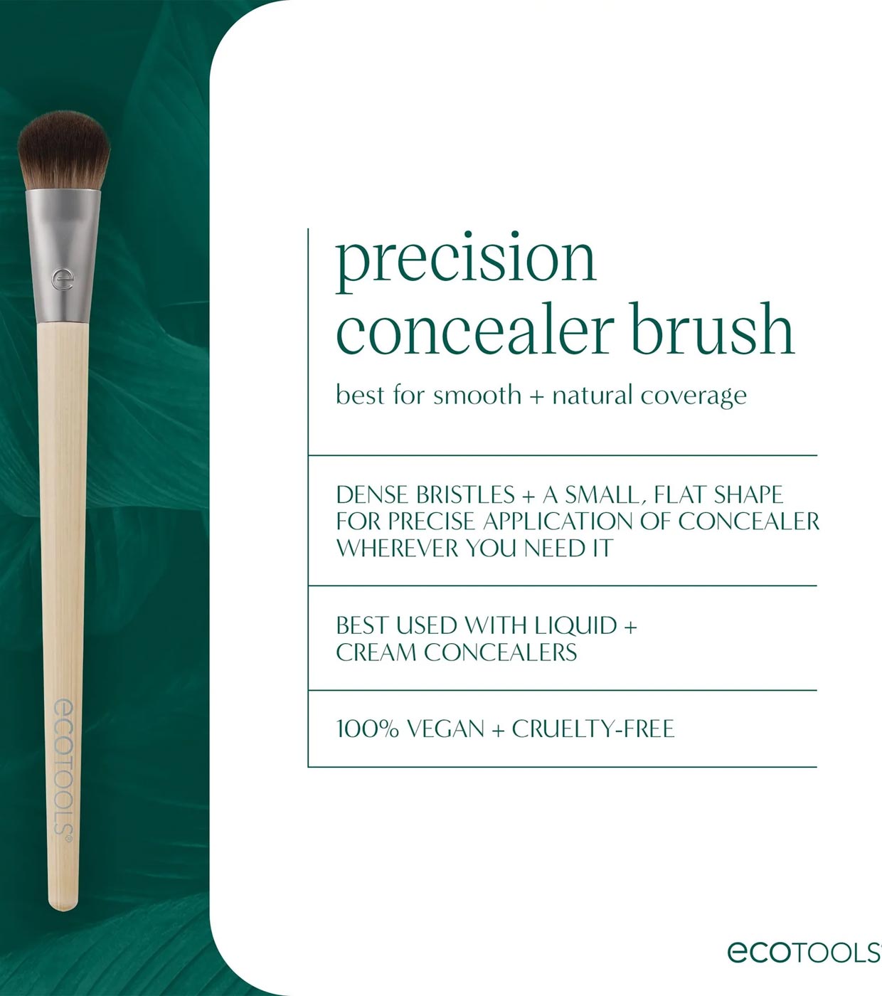 O pincel de corretivo EcoTools Precision Concealer foi projetado para uma cobertura natural e perfeita em áreas do rosto de difícil acesso.