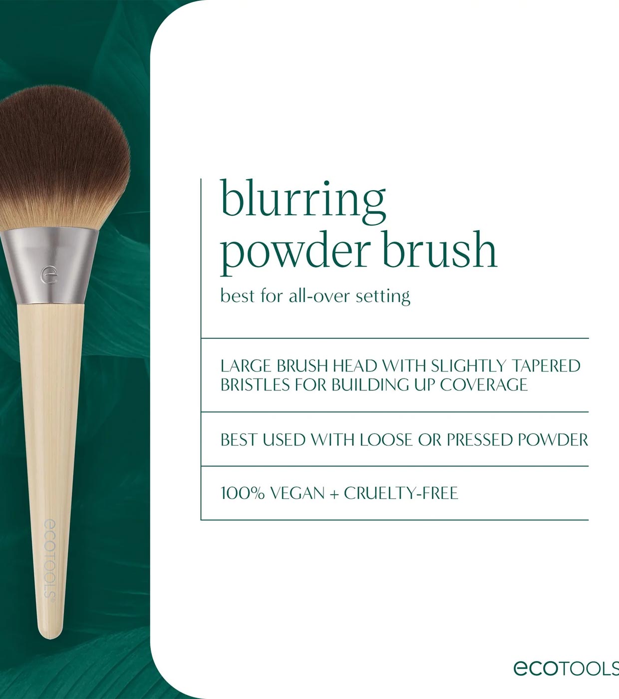 O pincel de maquiagem EcoTools Blurring Powder tem uma cabeça grande com cerdas sintéticas fofas para criar uma cobertura linda e completa para uma aparência mais natural.