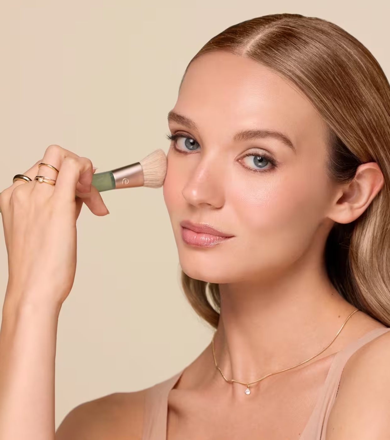 É compatível com iluminadores em creme, líquidos ou em pó, adaptando-se a diferentes texturas para obter um acabamento uniforme e sem marcas.
