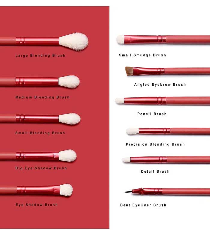 Conjunto de 11 pincéis para olhos Jade Series - Amber Red