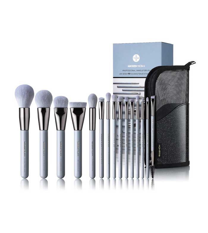 Conjunto de 15 pincéis de maquiagem Jade Series - Baby Blue