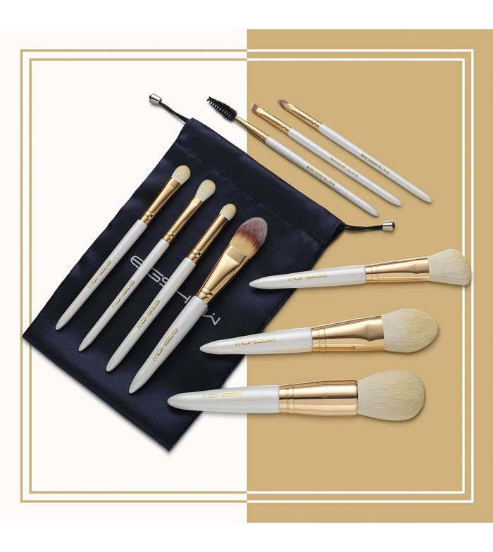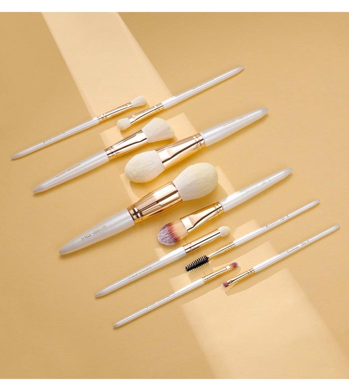 Este conjunto de pincéis é feito de fibras sintéticas de alta qualidade com cabos de madeira cor de ouro champanhe.