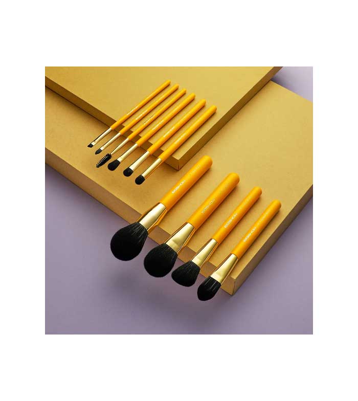 Este conjunto contém 10 pincéis veganos, perfeitos para sua rotina diária de maquiagem facial; 4 pincéis de maquiagem grandes básicos e 6 pincéis de maquiagem para os olhos.