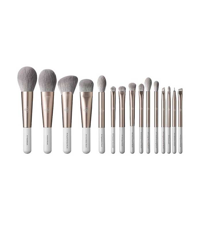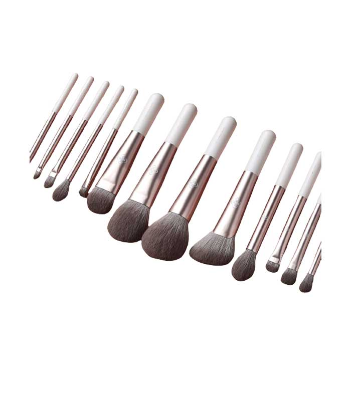 Contém 15 pincéis e pincéis que executam uma ampla variedade de tarefas de maquiagem.