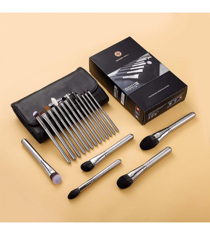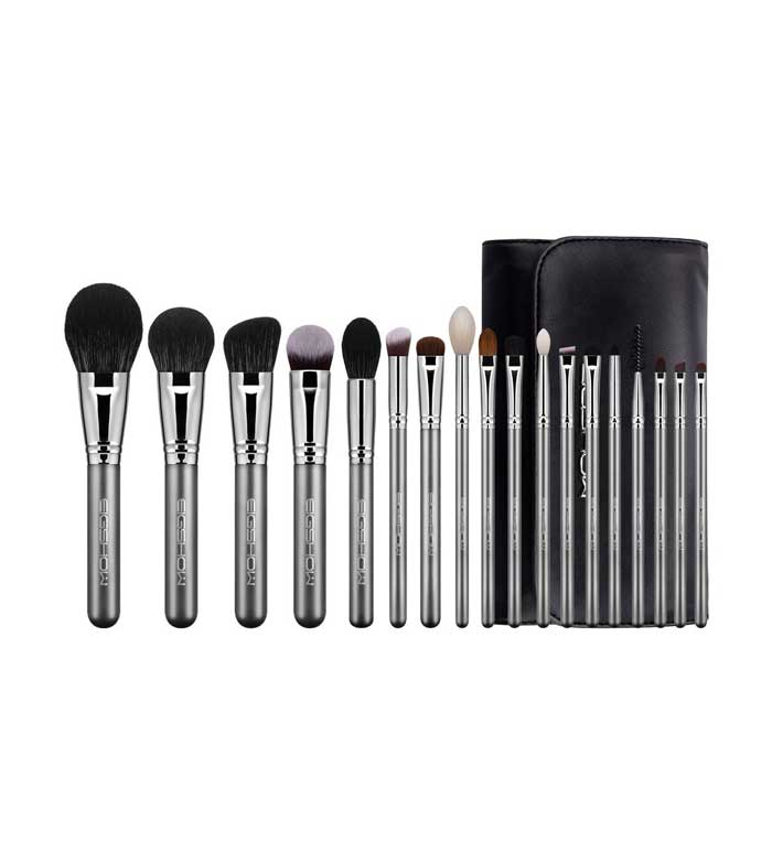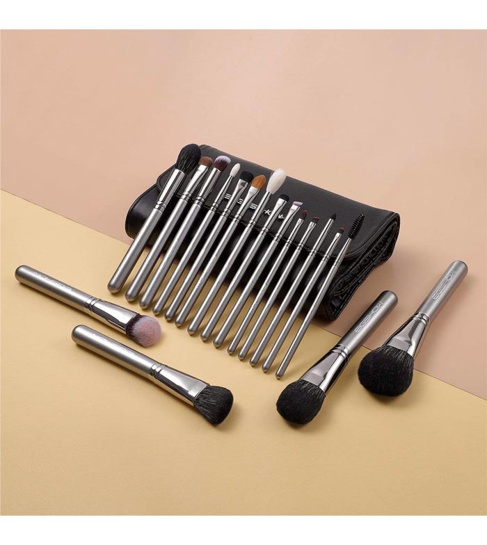 Este conjunto de pincéis é feito de fibras sintéticas de alta qualidade com belos cabos de madeira cinza metálico.