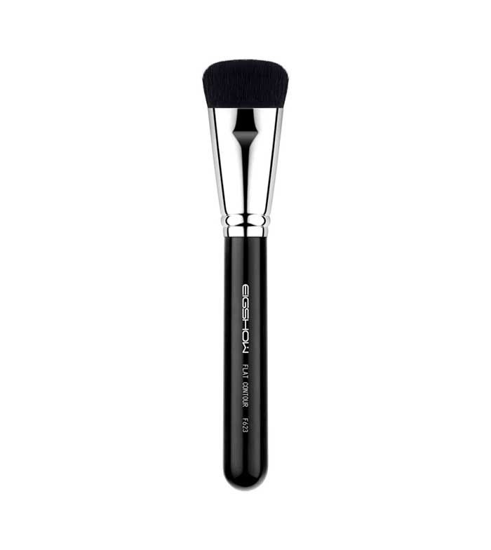 Um pincel de contorno profissional com um cabo de madeira preto clássico. As cerdas macias e planas são perfeitas e ideais para obter um acabamento natural e contornar o rosto.