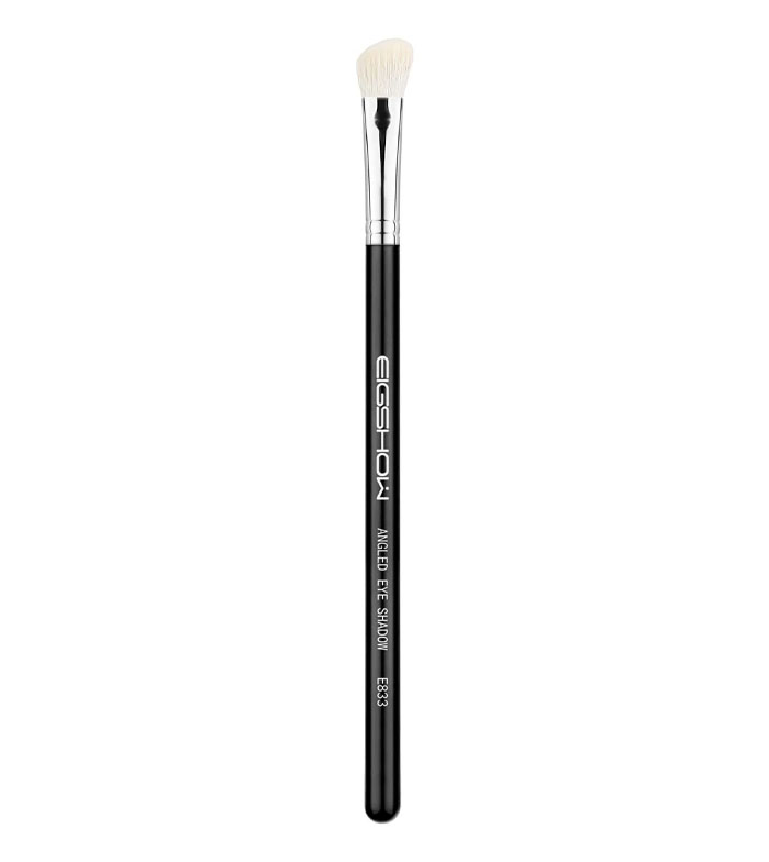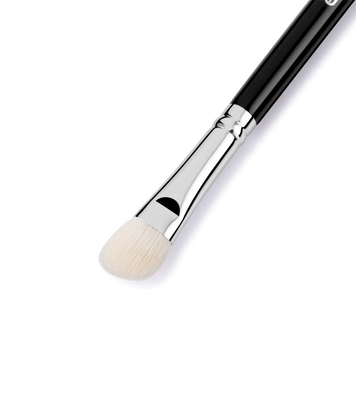 Esta escova de cabelo natural angulada é ideal para a aplicação precisa de sombras nas pálpebras.