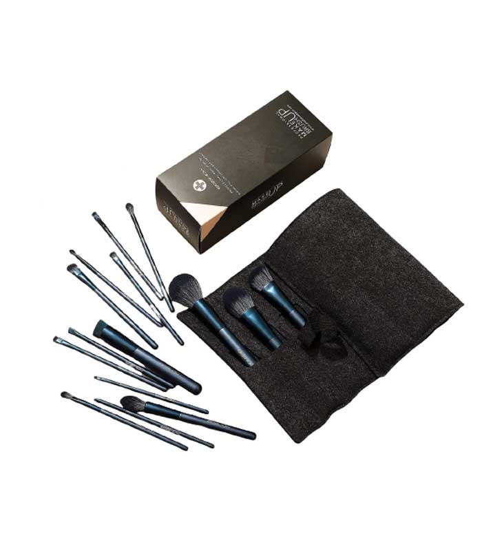 Um conjunto com um elegante design azul marinho, com o qual você terá tudo o que precisa para uma aplicação perfeita de maquiagem.