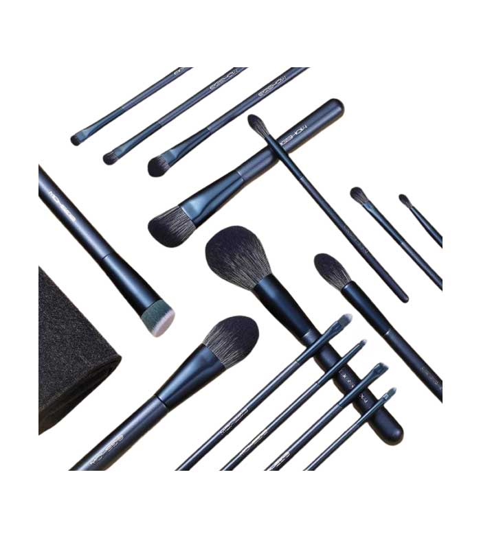 Uma ampla gama de pincéis para os olhos com os quais você pode delinear, aplicar e misturar todos os tipos de sombras.