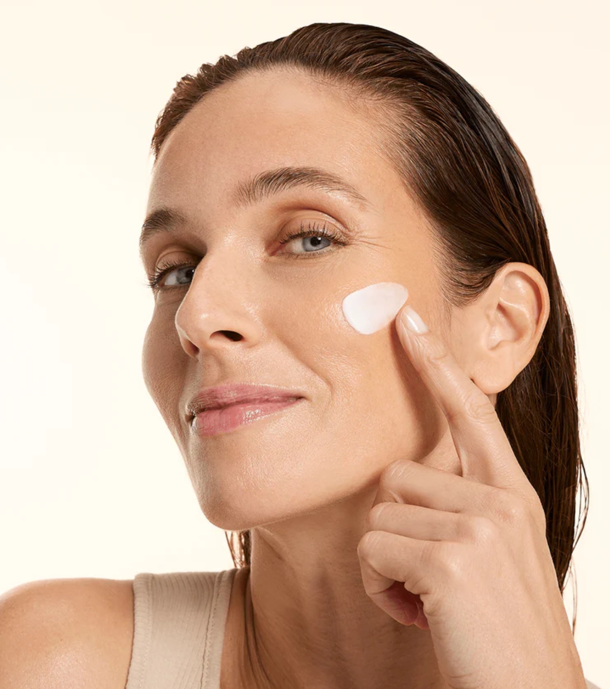 À noite, após o sérum, aplique uma camada fina e uniforme no rosto e pescoço (evite a área dos olhos).