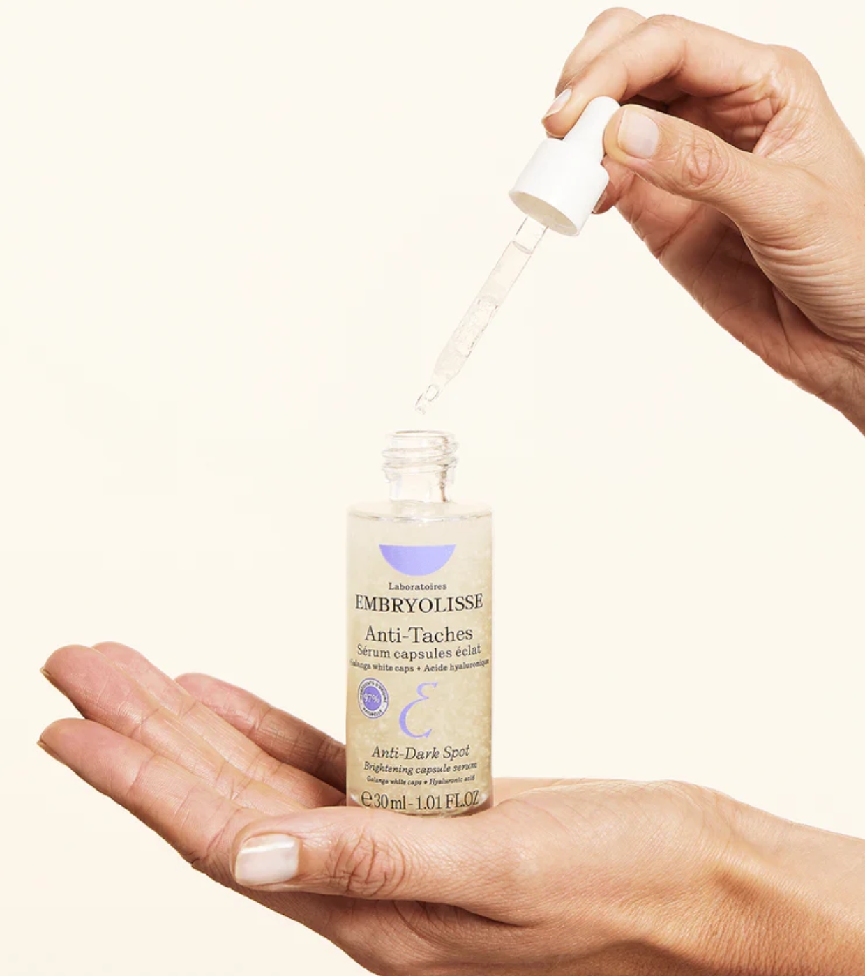 Este sérum com cápsulas anti-manchas escuras da Embryolisse combina inovação, eficácia e alta tolerância, mesmo em peles sensíveis.