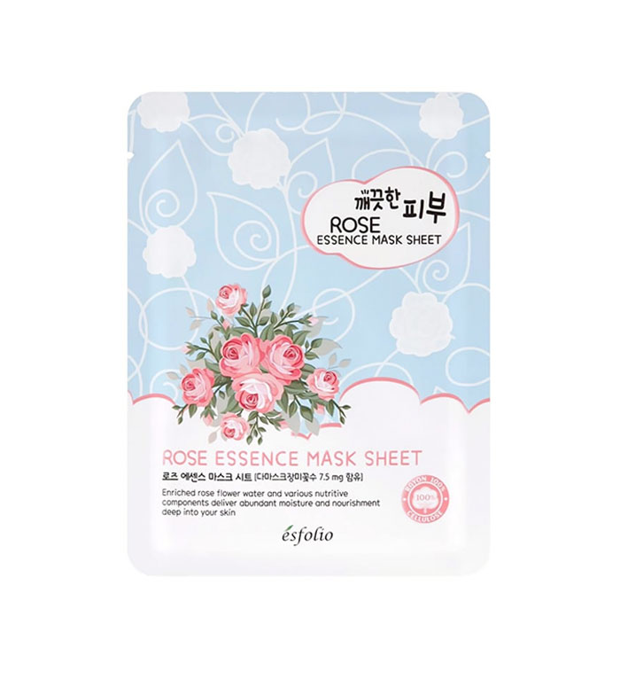 Máscara facial de algodão à base de extrato de rosa para hidratação intensa das camadas mais profundas da pele.