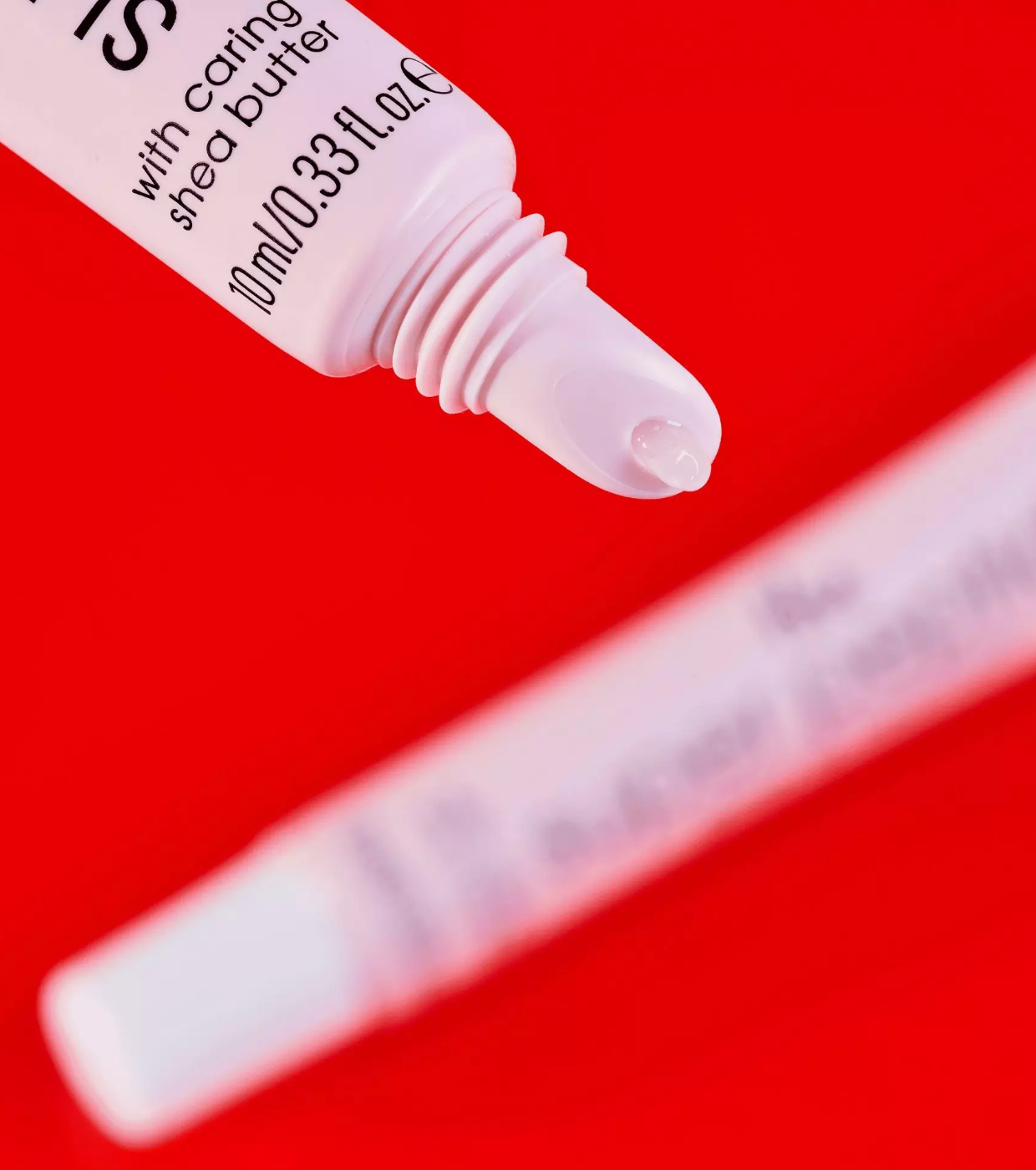 O tratamento labial tem textura leitosa e brilhante e é enriquecido com ingredientes nutritivos como peptÃdeos, manteiga de karité e vitamina E.
