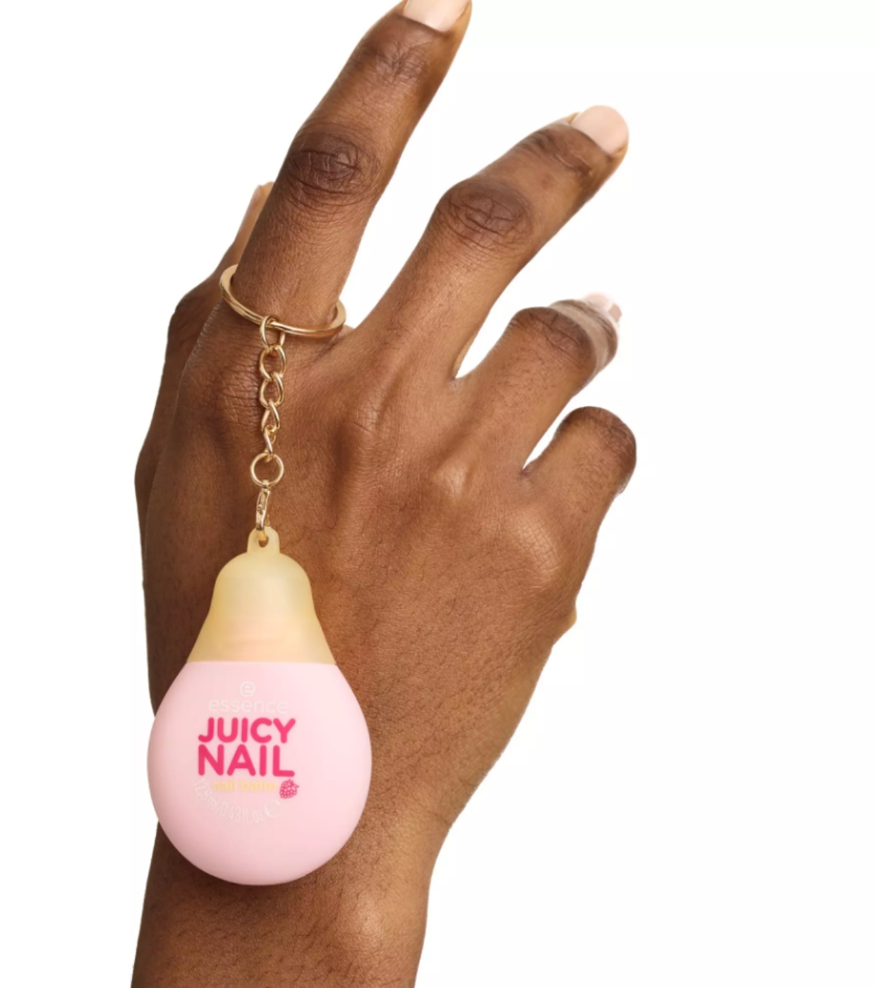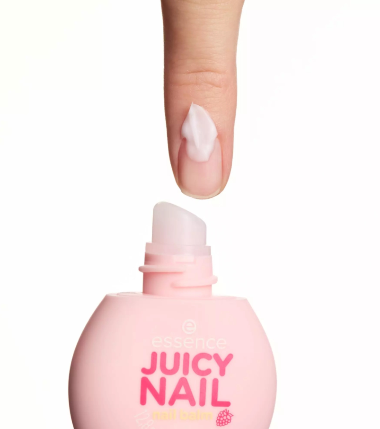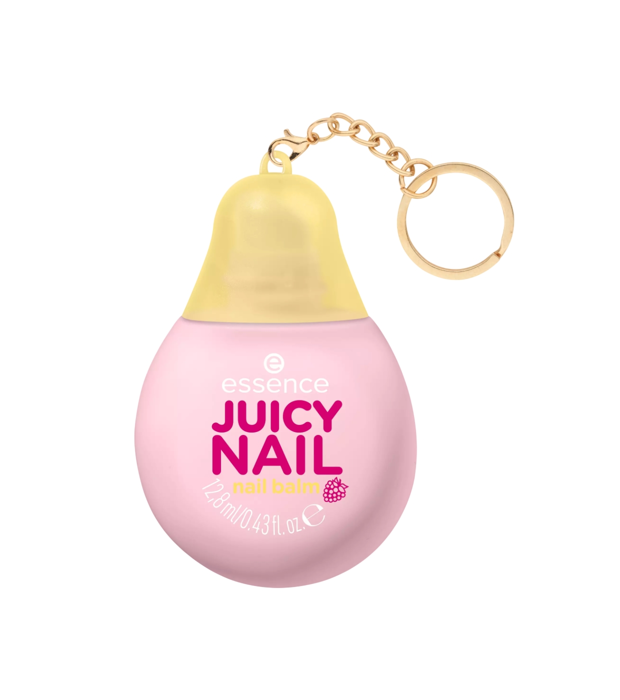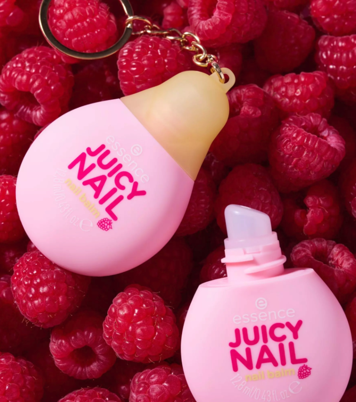 O bálsamo para unhas Juicy Nail da essence , em um delicado tom rosa pastel, evoca a frescura das framboesas, proporcionando nutrição e suavidade instantâneas.