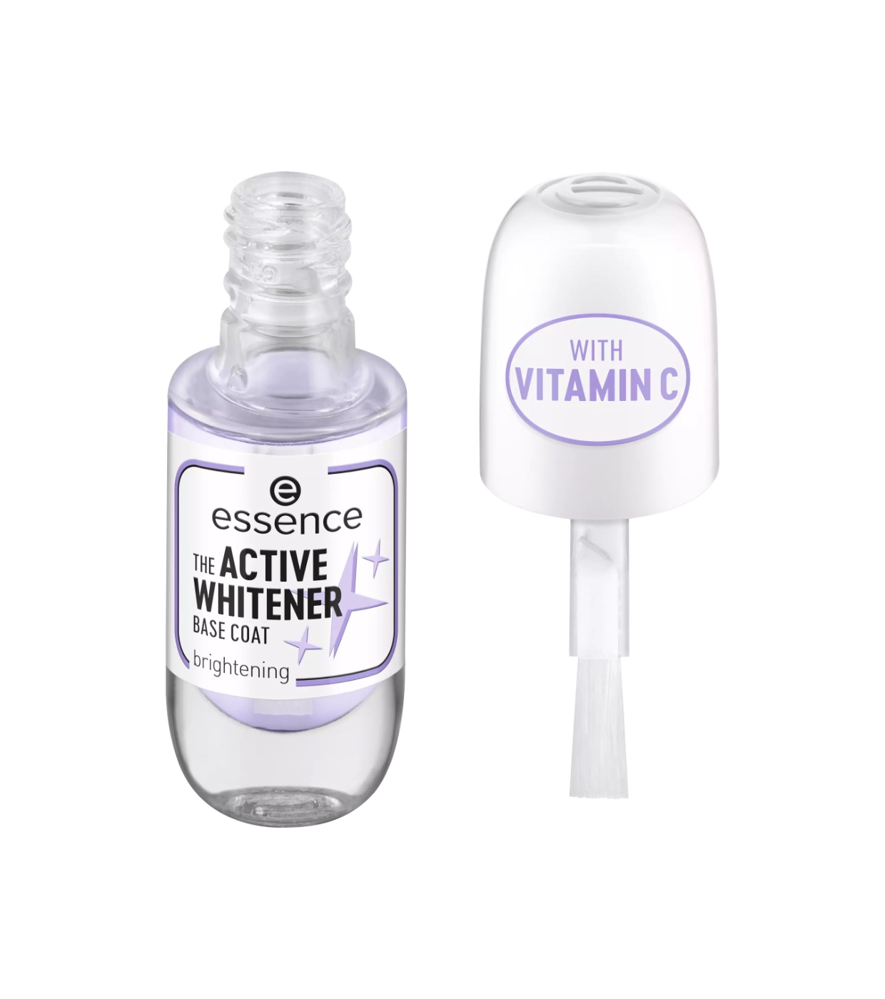Realce suas unhas em segundos usando a base essence THE ACTIVE WHITENER BASE COAT com uma textura azul suave e brilhante.