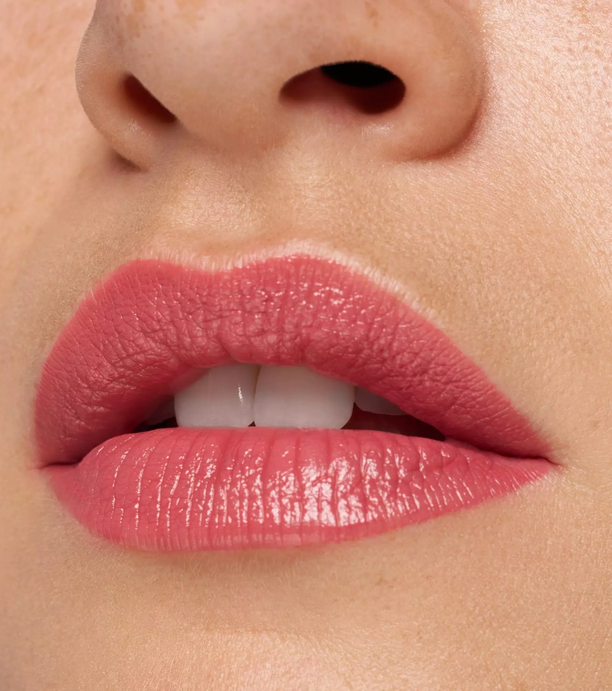 O acabamento acetinado equilibra perfeitamente um efeito mate elegante com um brilho luminoso, realçando o formato natural dos lábios com um resultado sofisticado.